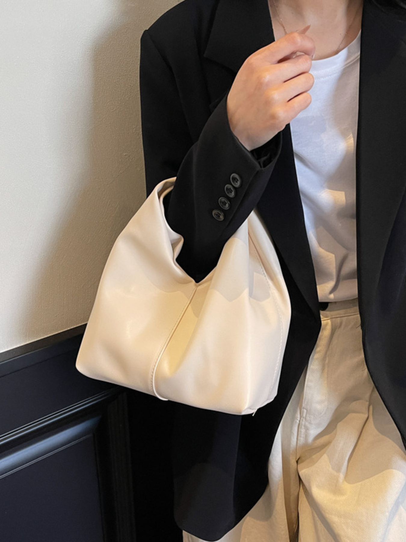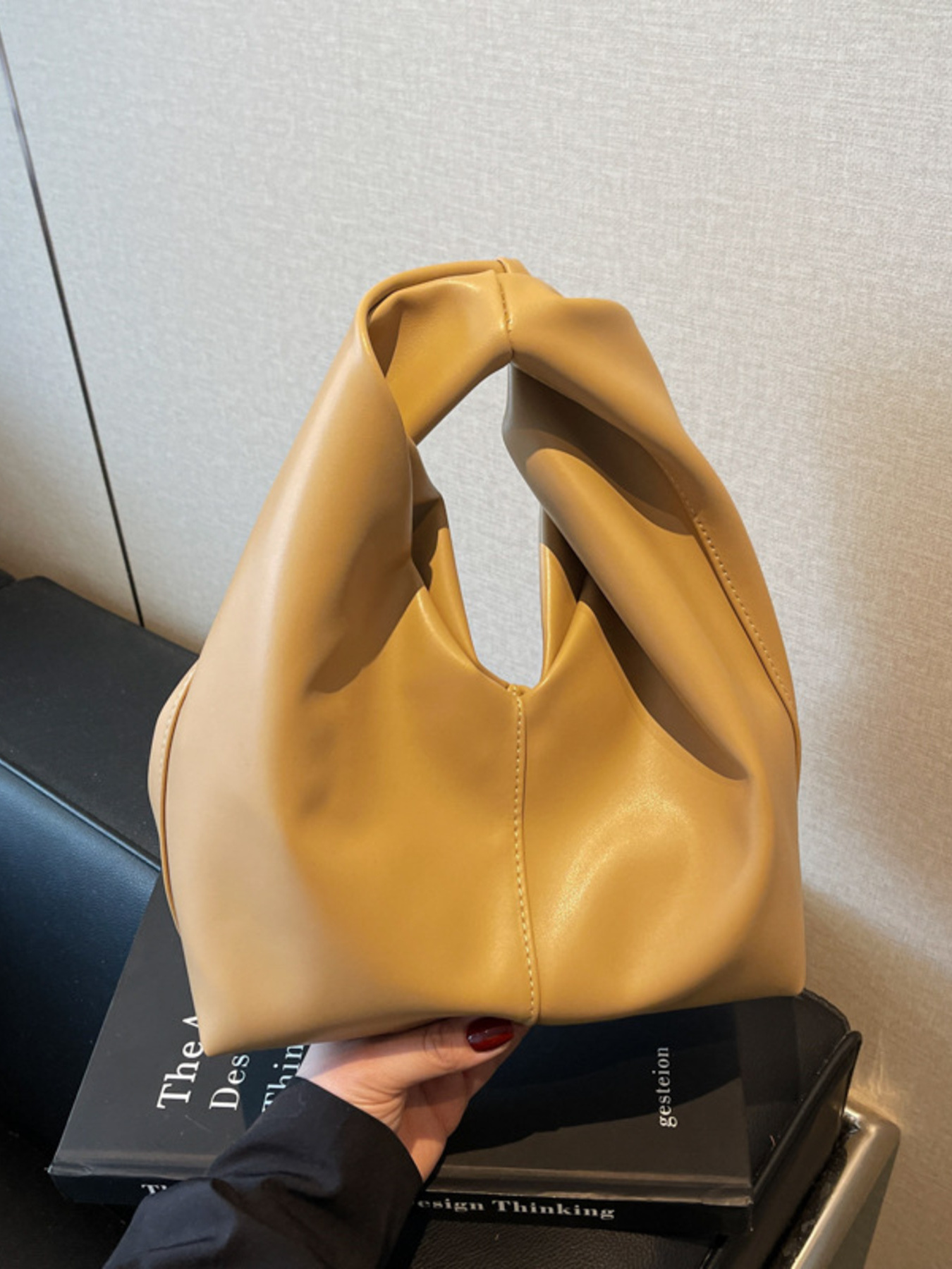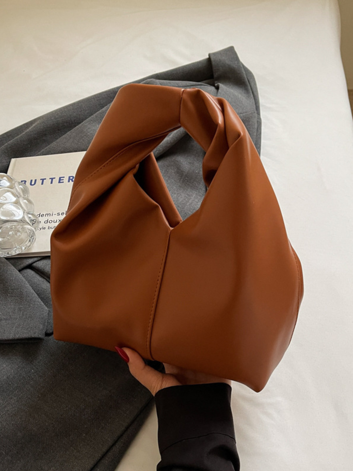 Knot Handle Leather Handbag
