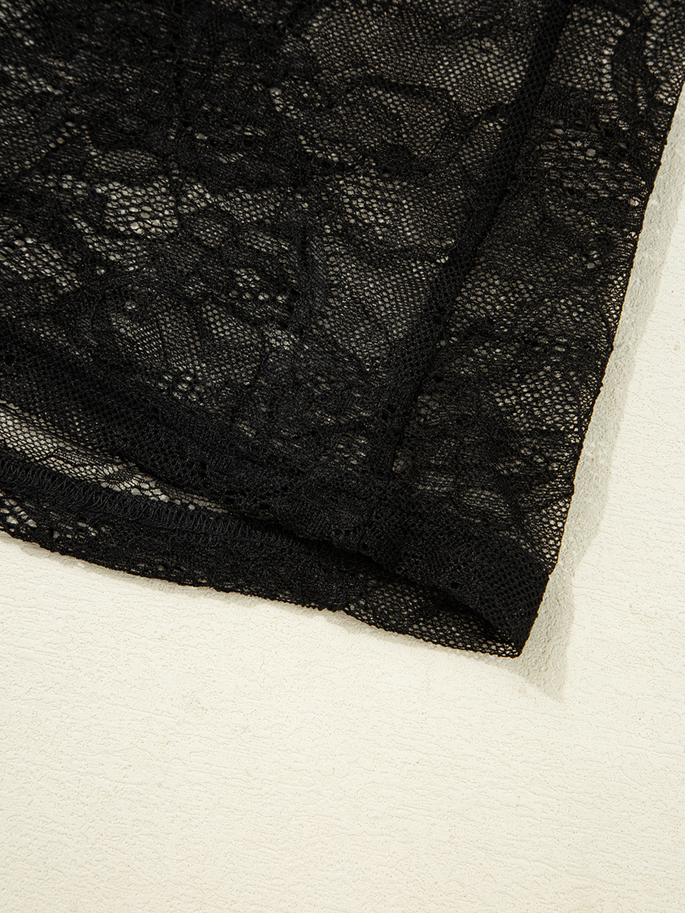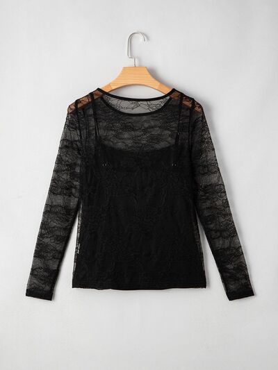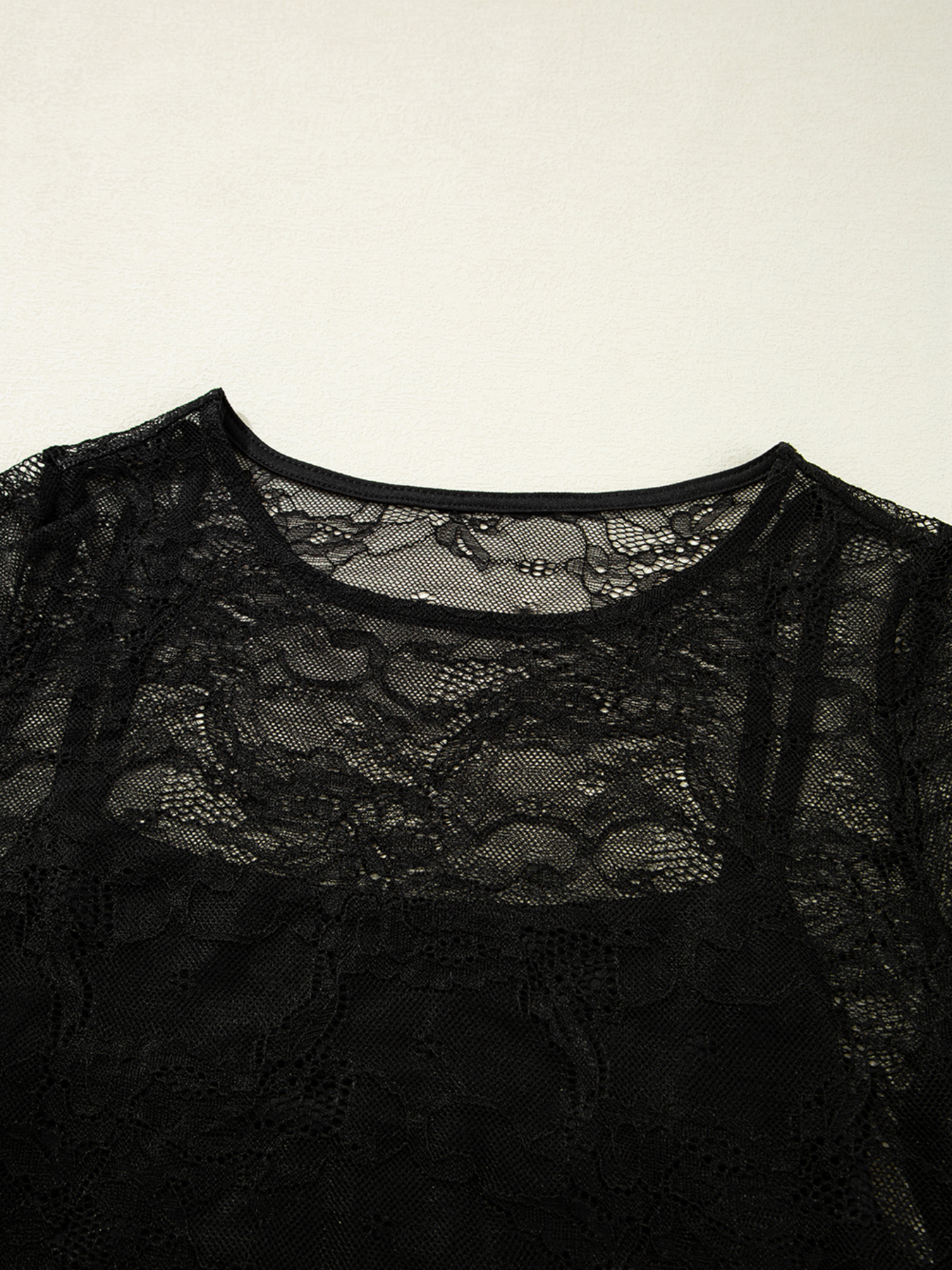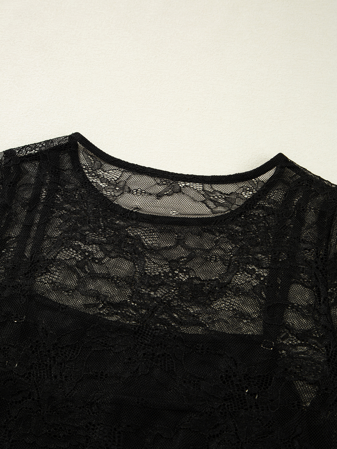 Lace Crochet Mesh Patched Slim Fit Long Sleeve Top