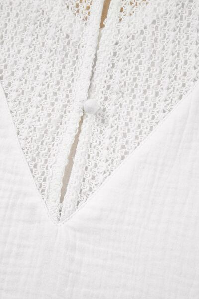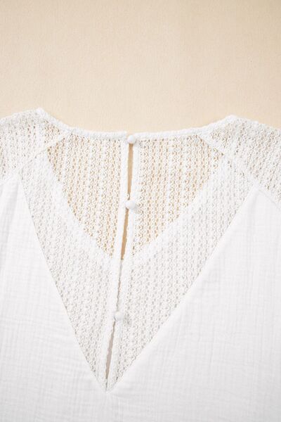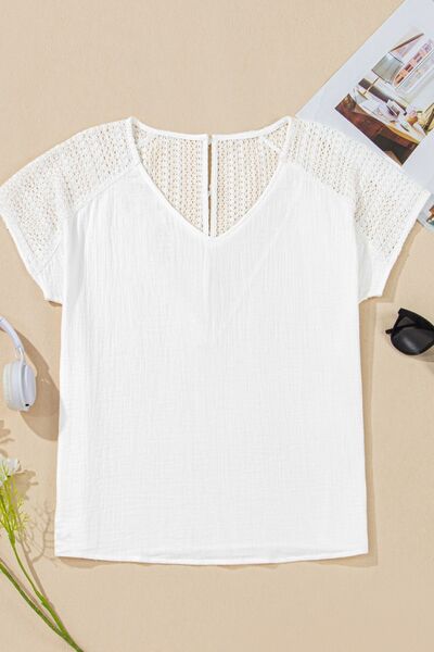Lace Crochet Textured Button Back V Neck T Shirt