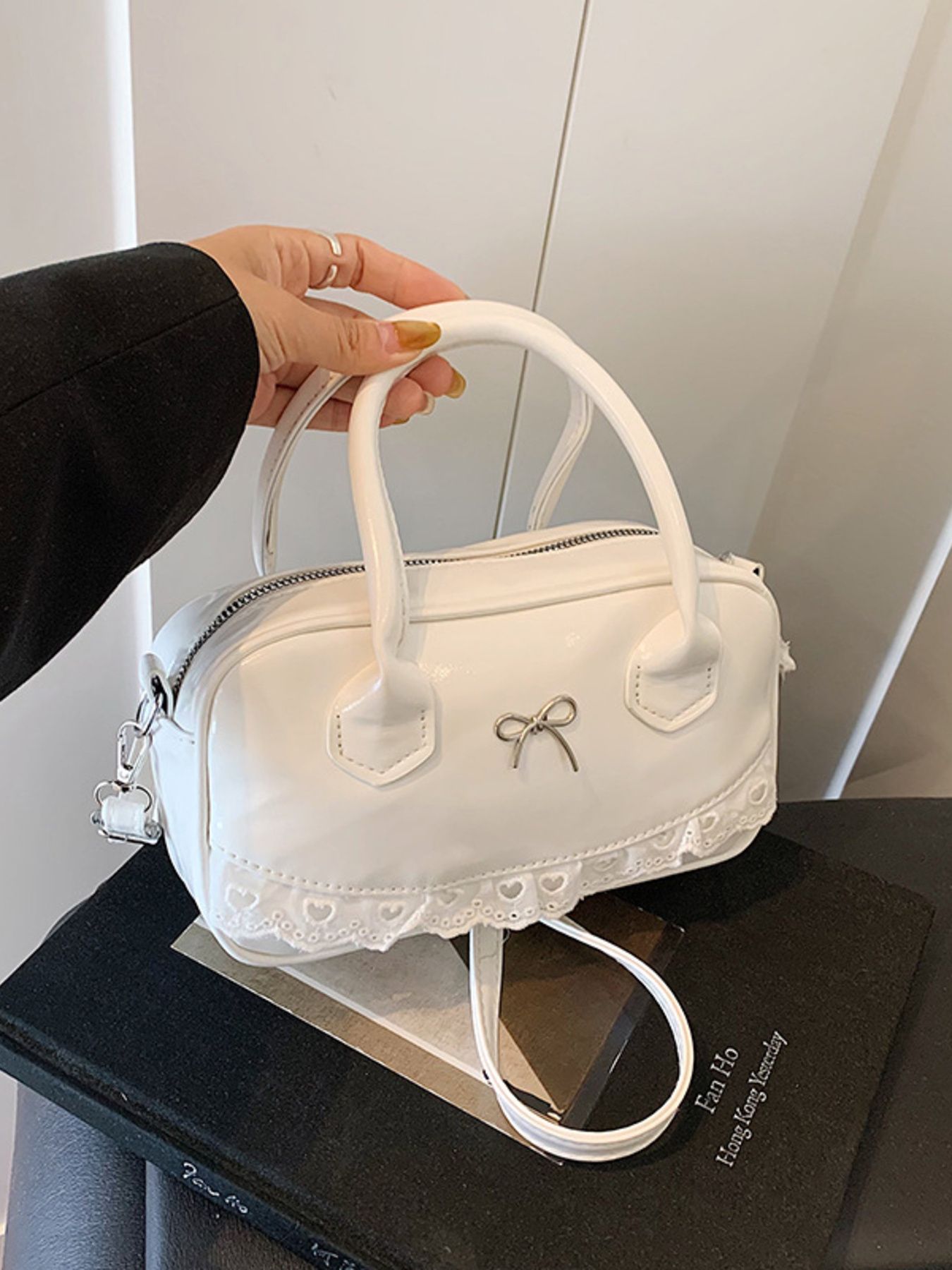 Lace Detail Bow Crossbody Bag
