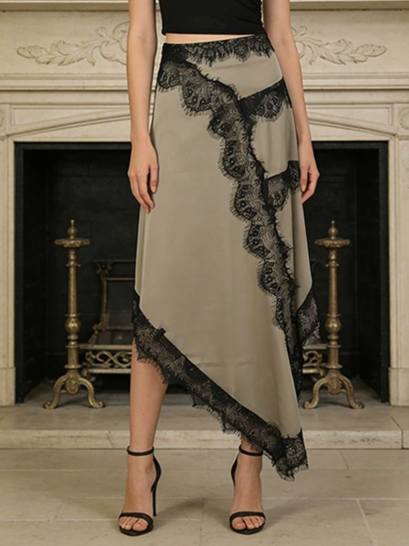 Features:Lace,Cutout,Asymmetrical