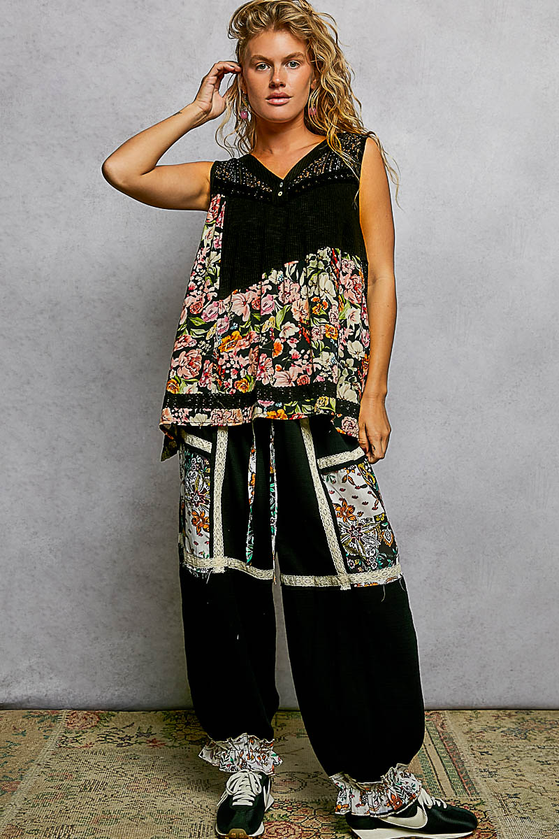 Material composition:SELF: 100%RAYON CONTRAST: 61% POLYESTER, 33% RAYON, 6% SPANDEX