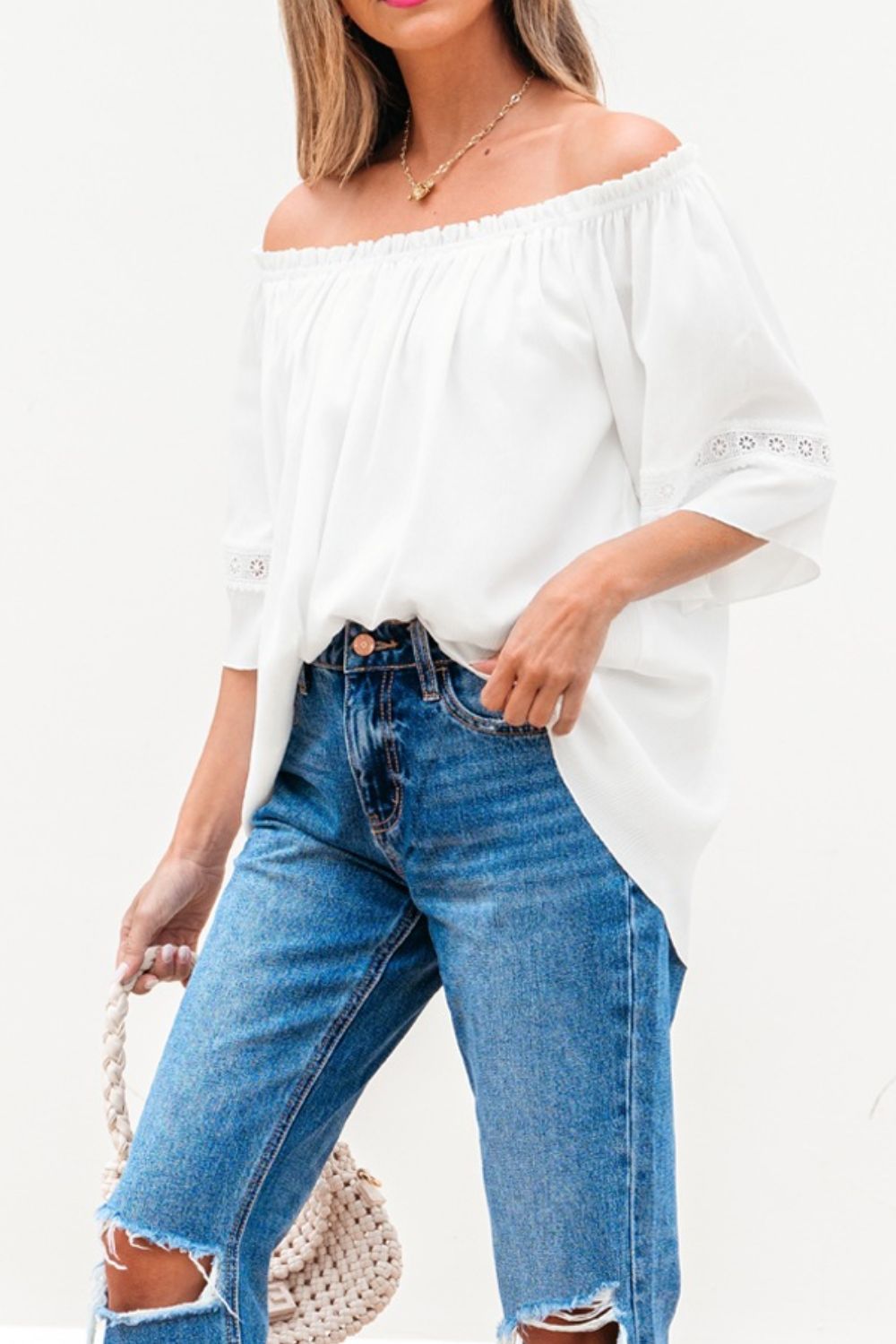 Lace Detail Off-Shoulder Blouse
