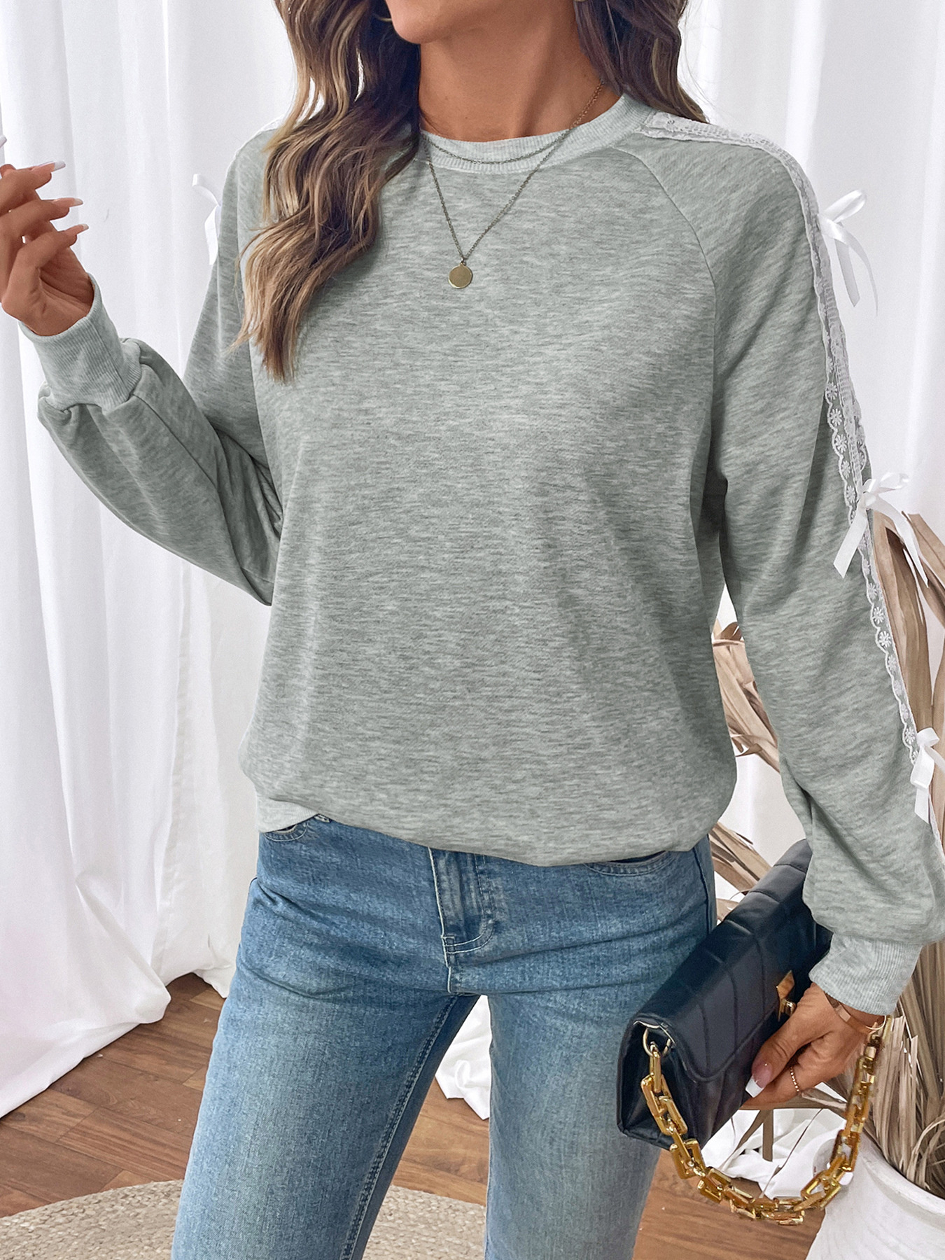 Lace Detail Round Neck Sweatshirt