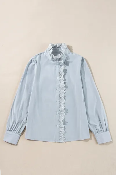 Lace Detail Striped Mock Neck Long Sleeve Shirt