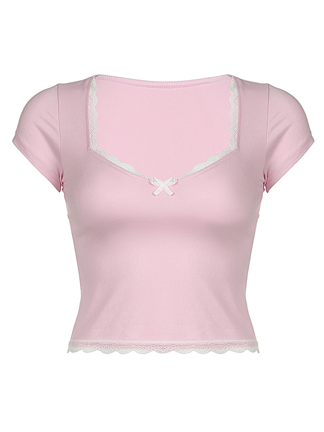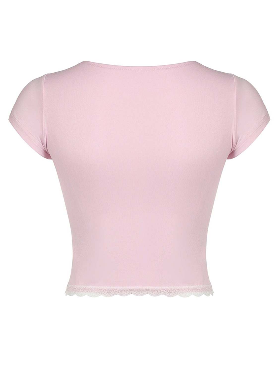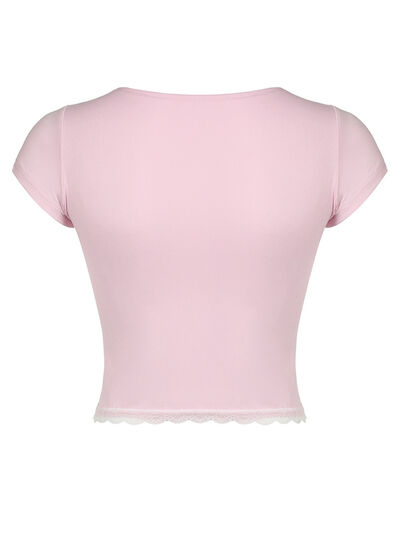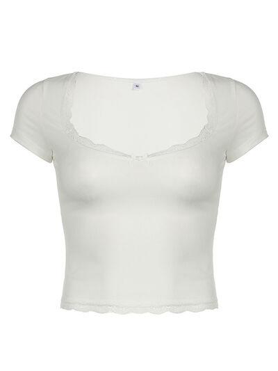Lace Detail Sweetheart Neck Short Sleeve T-Shirt
