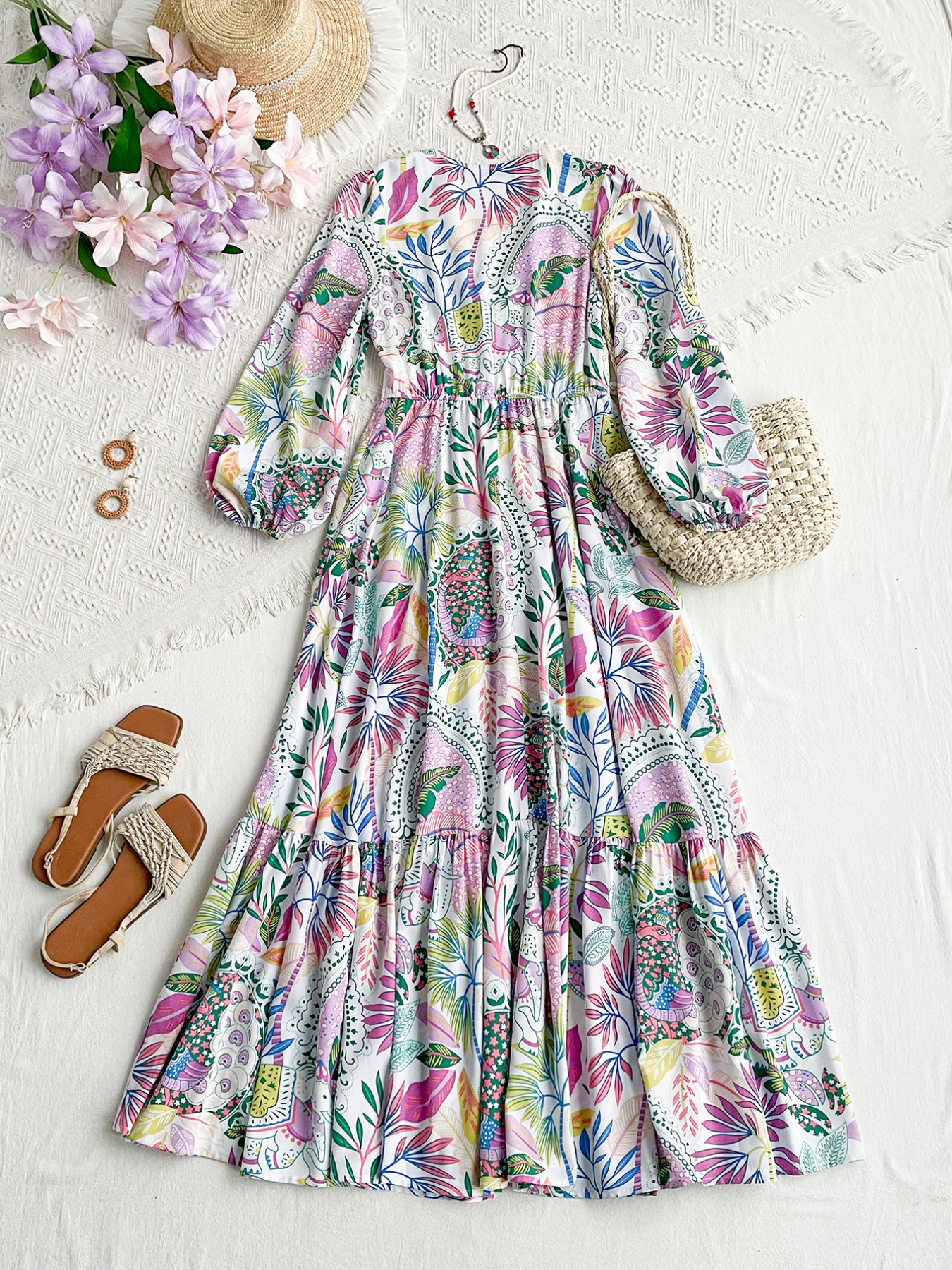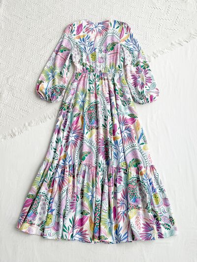 Lace Detail V-Neck Balloon Sleeve Dress