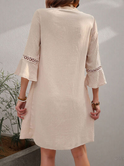 Lace Detail V-Neck Bell Sleeve Dress