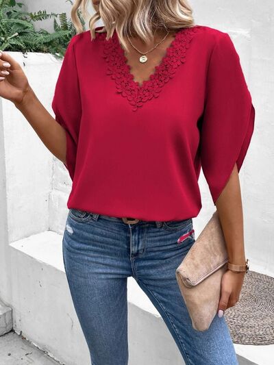 Lace Detail V-Neck Half Sleeve Blouse