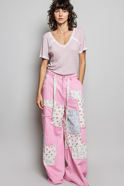 Lace Detail V-Neck Short Sleeve Textured T-Shirt