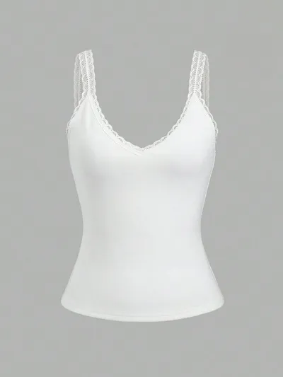 Lace Detail V-Neck Wide Strap Tank