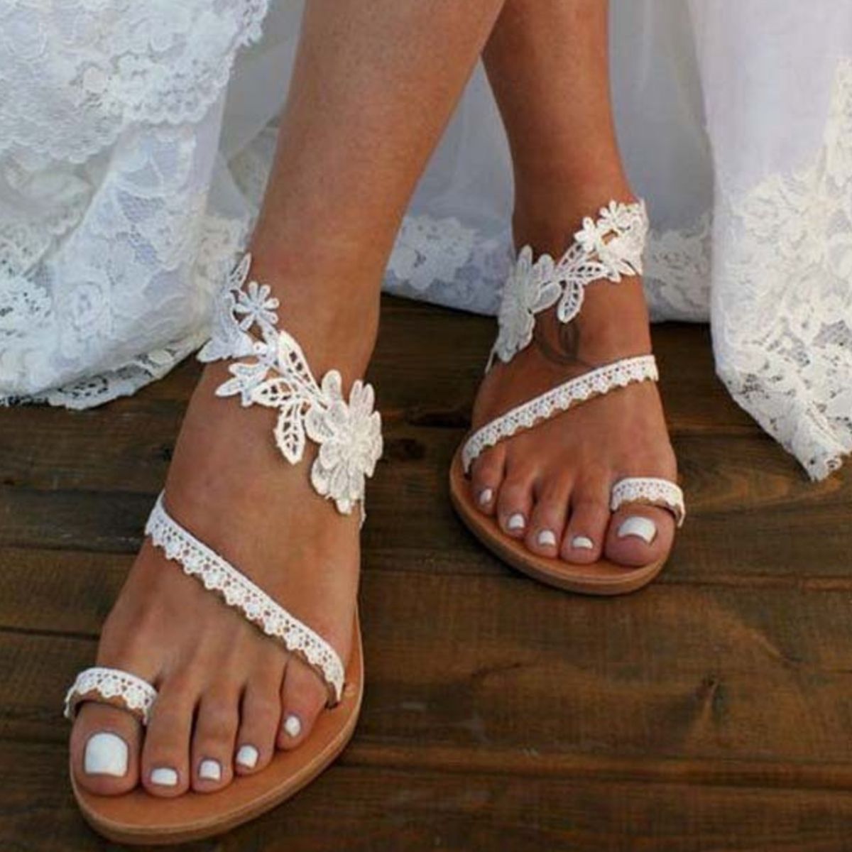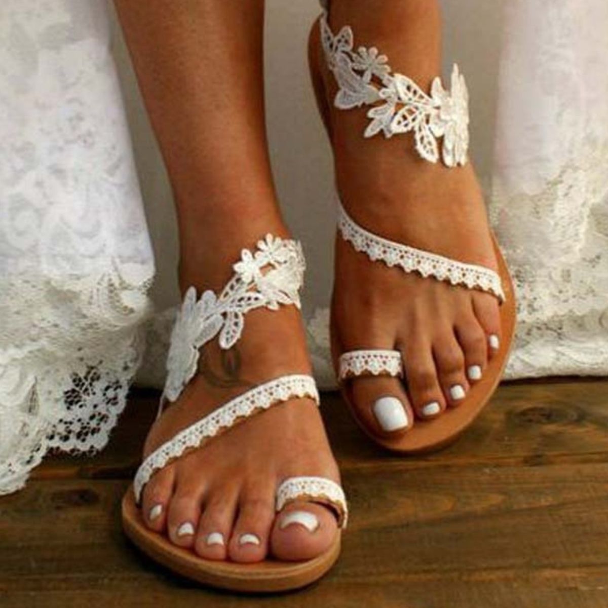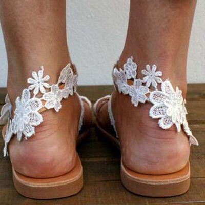Lace Flower Toe Ring Flat Sandals