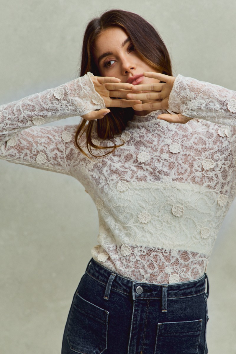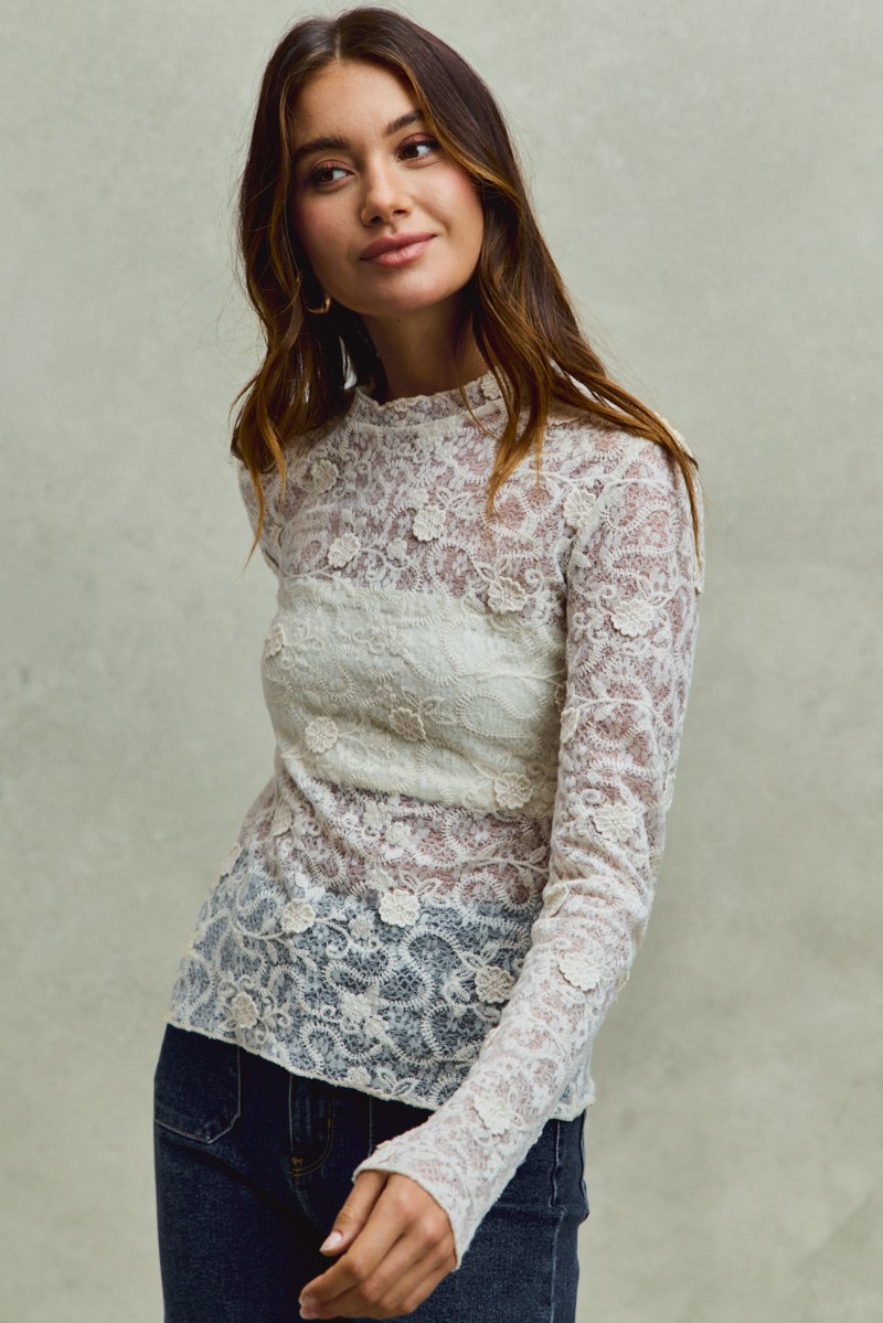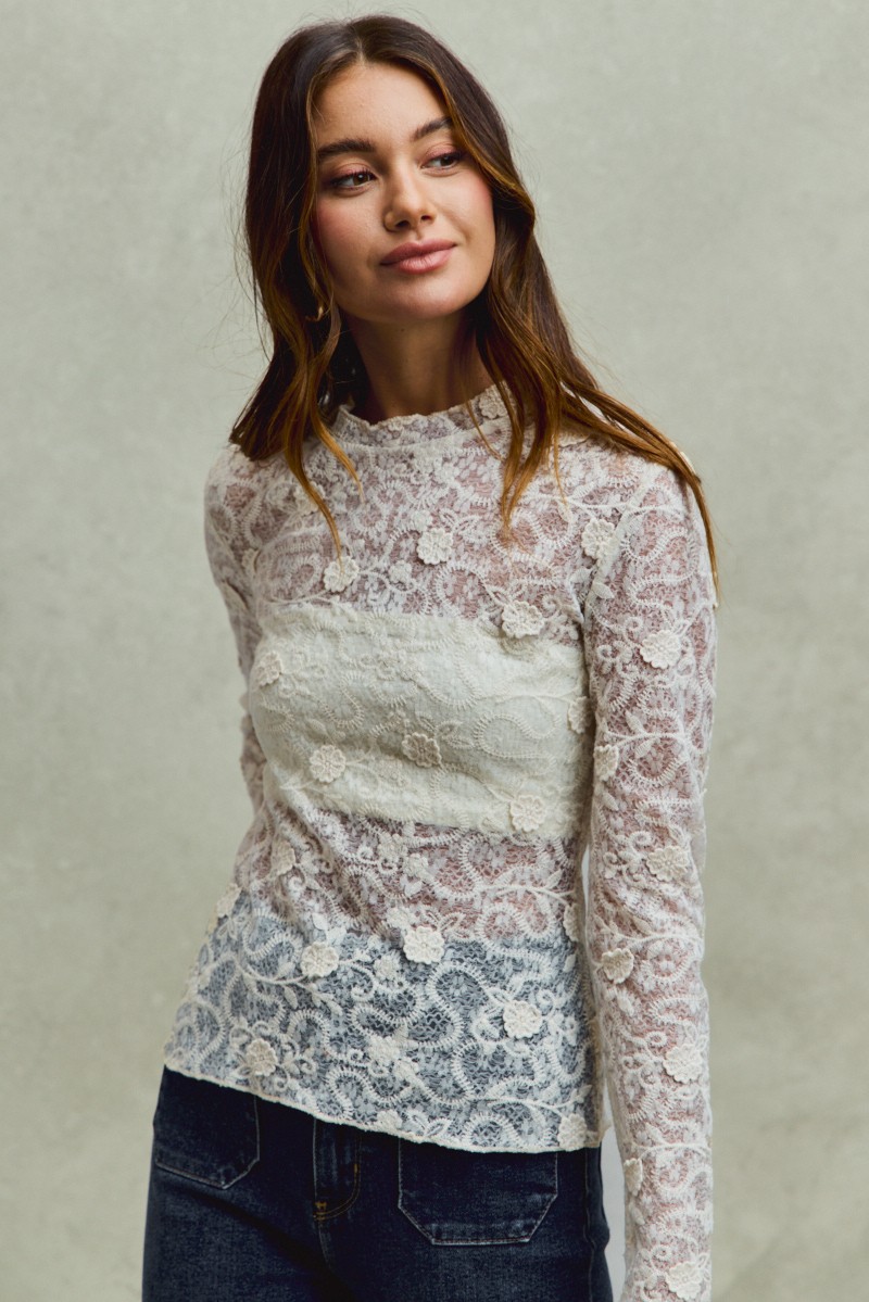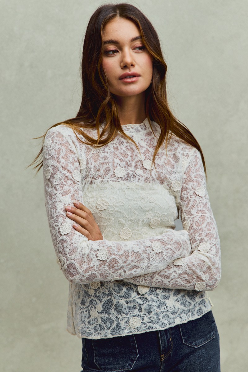 Lace Long Sleeve 3d Effect Floral Layering Top
