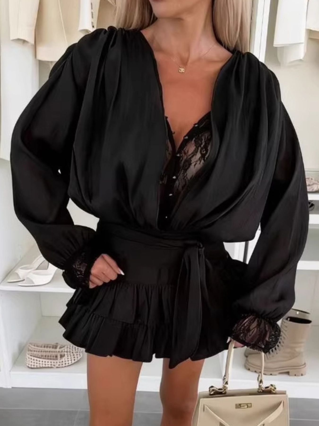 Features:Lace,Tiered,Ruffled,Sheer,Tied