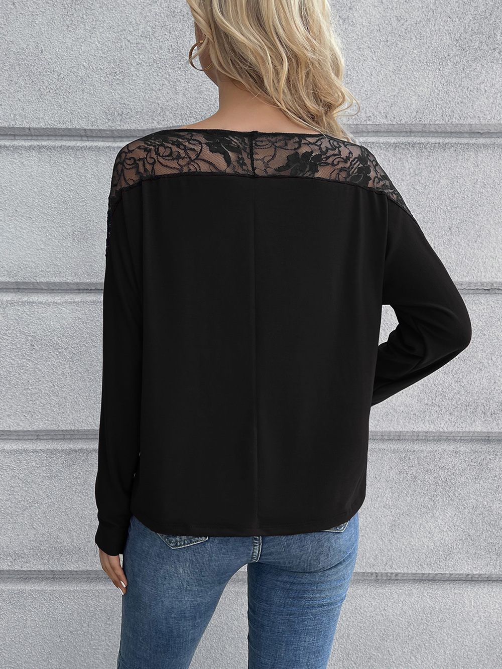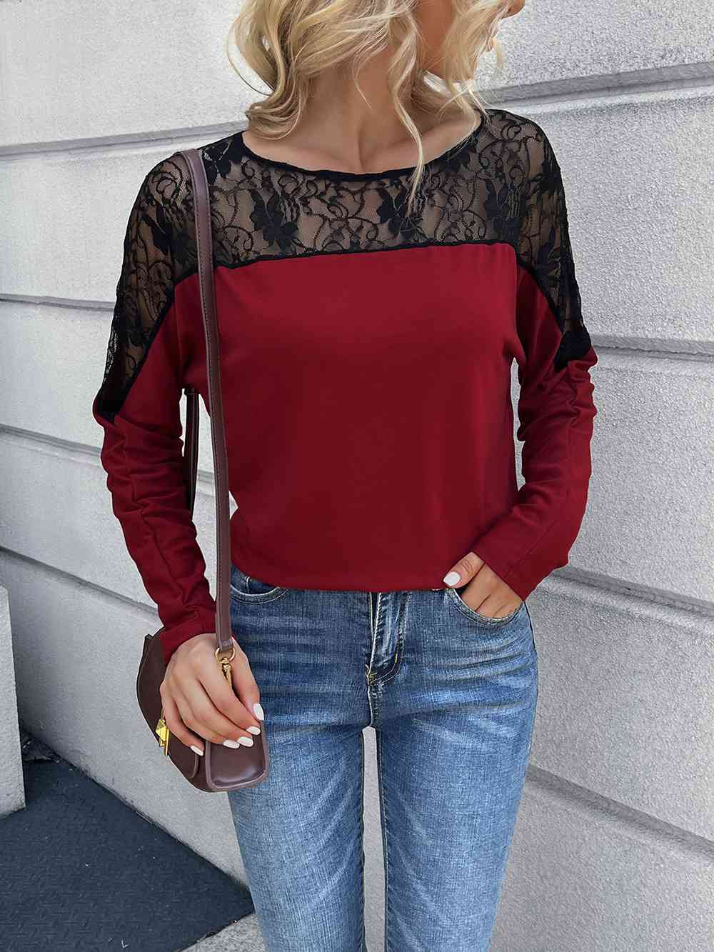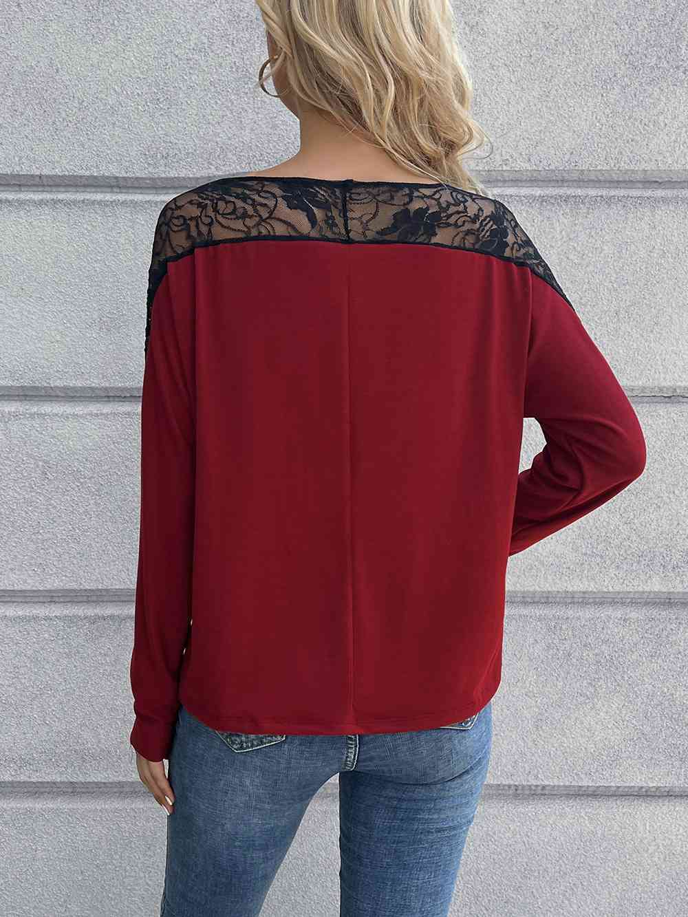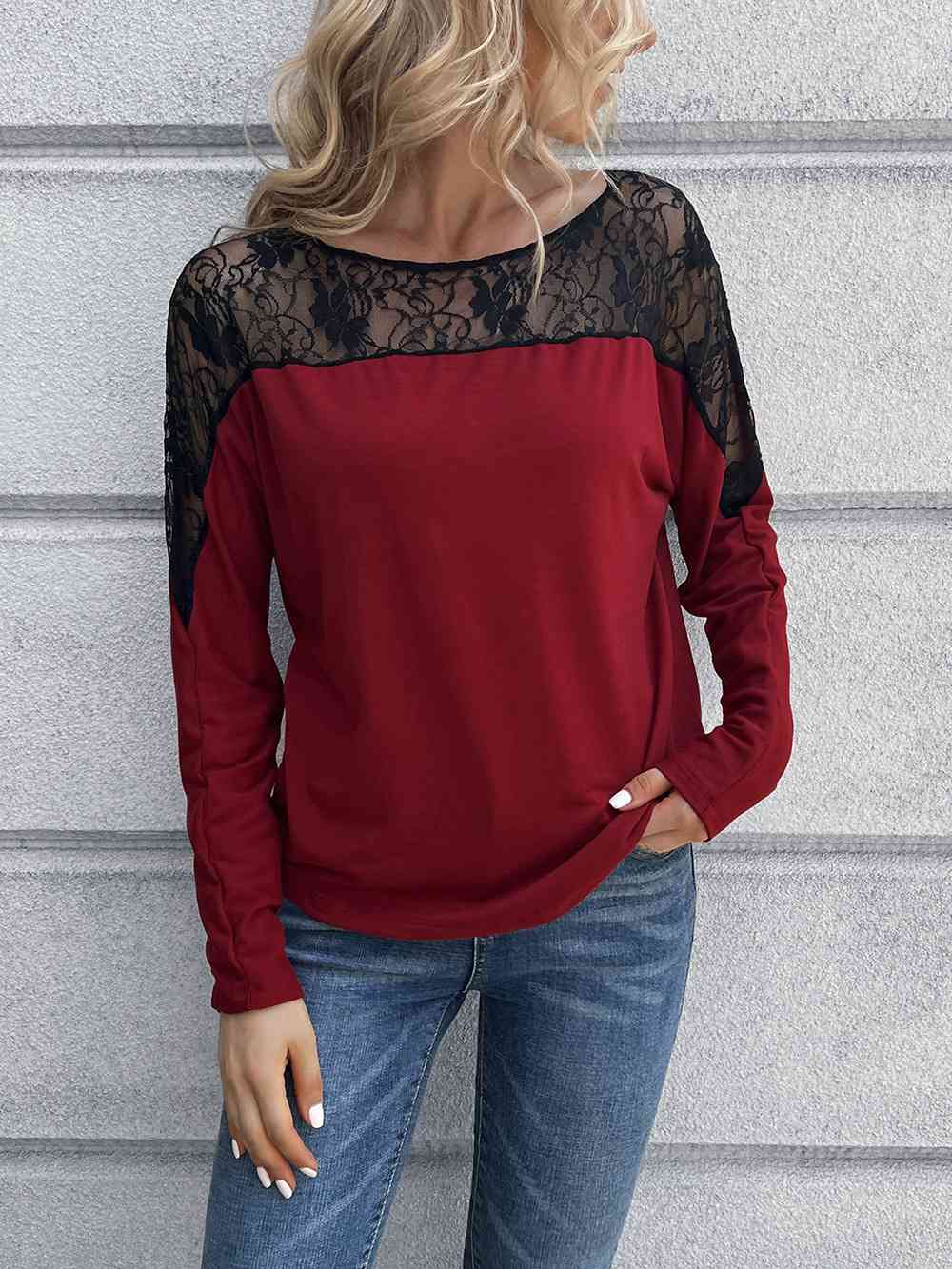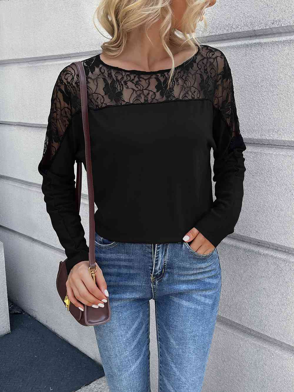 Lace Long Sleeve Round Neck Tee