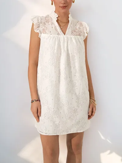 Lace Notched Cap Sleeve Mini Dress
