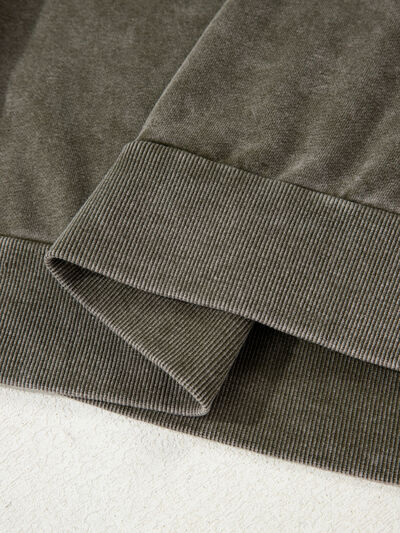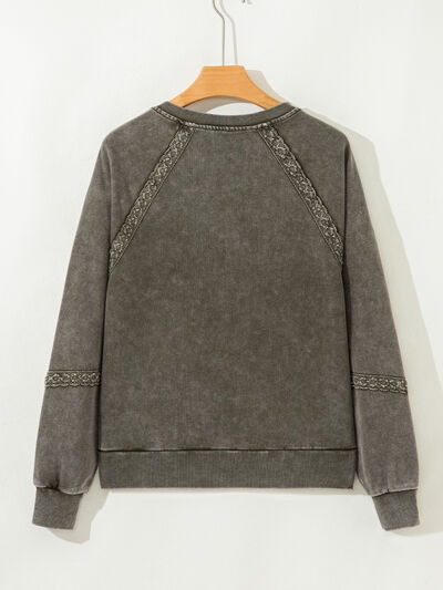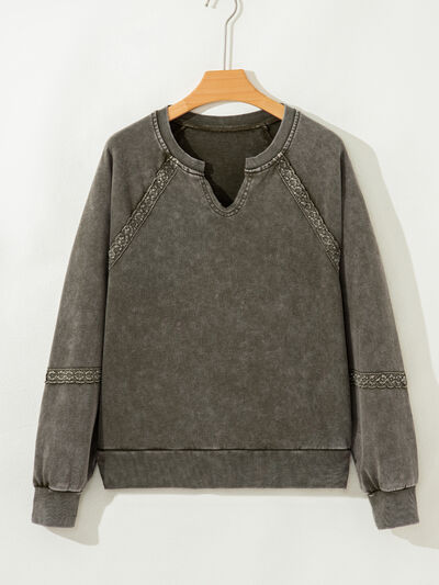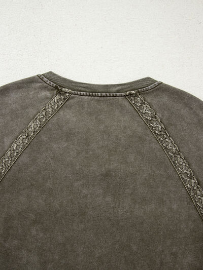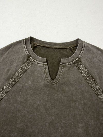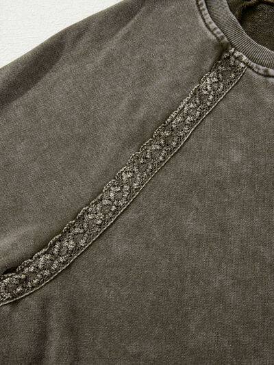 Lace Patchwork Detail Notched Mineral Wash Sweatshirt
