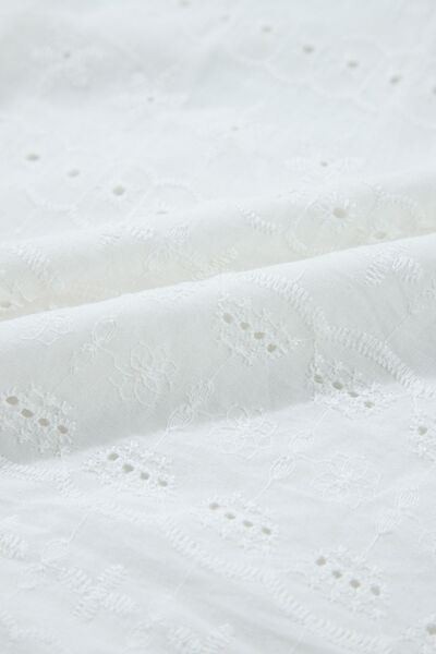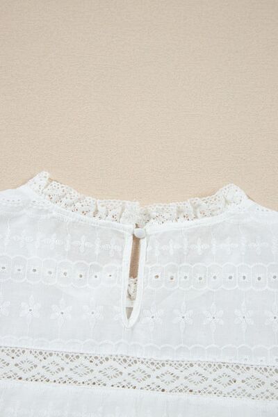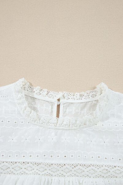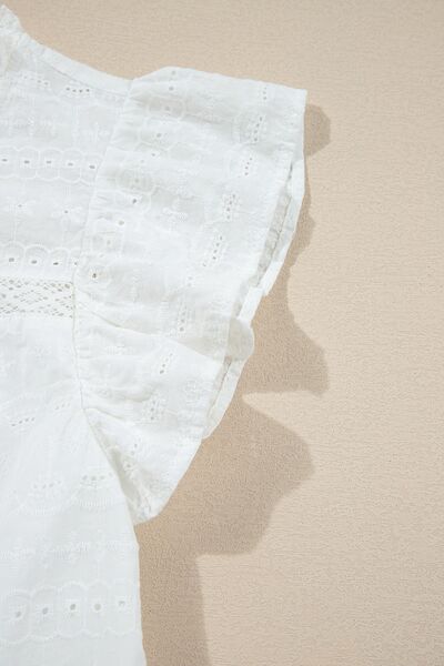 Lace Round Neck Flutter Sleeve Eyelet Blouse