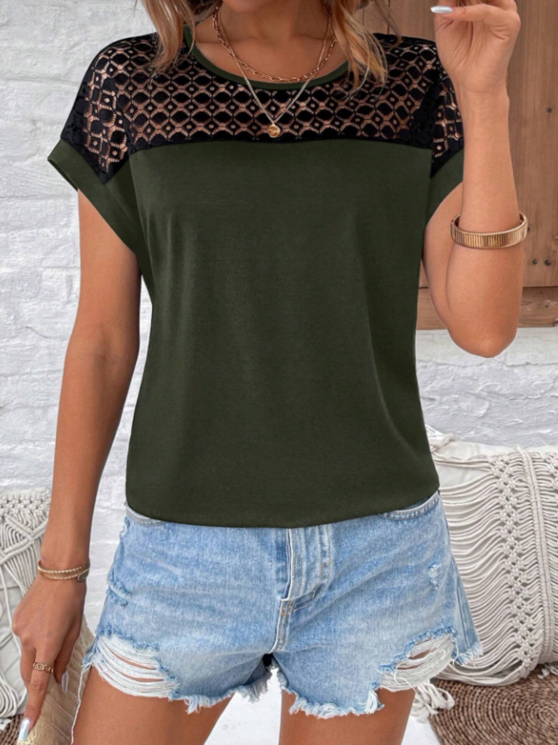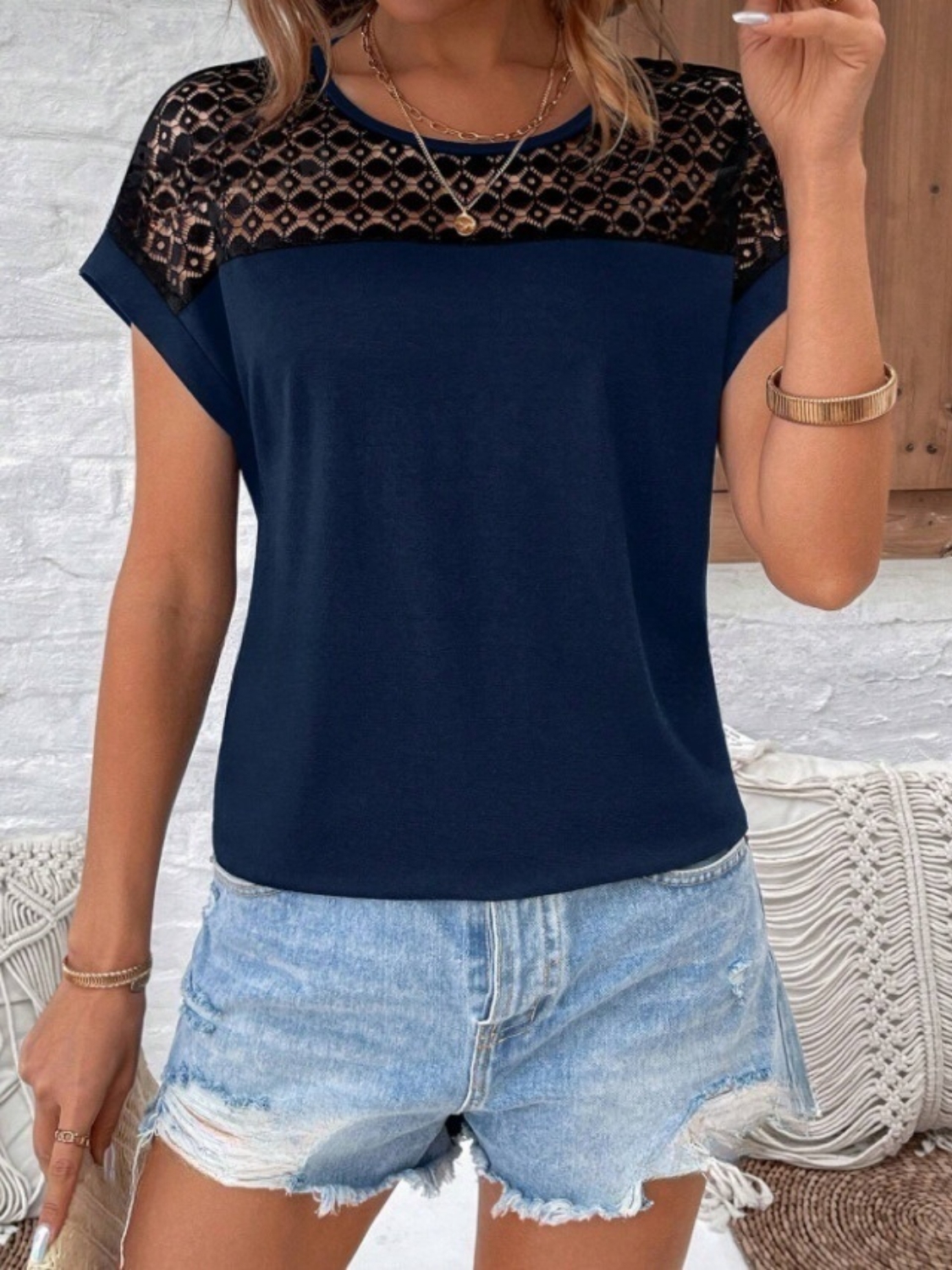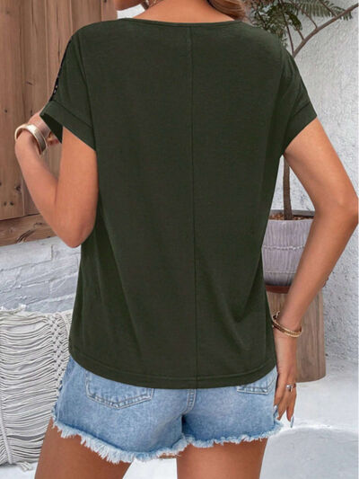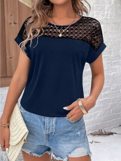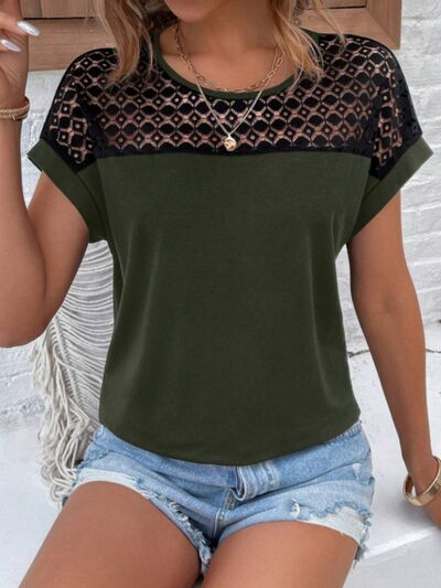 Lace Round Neck Short Sleeve T-Shirt