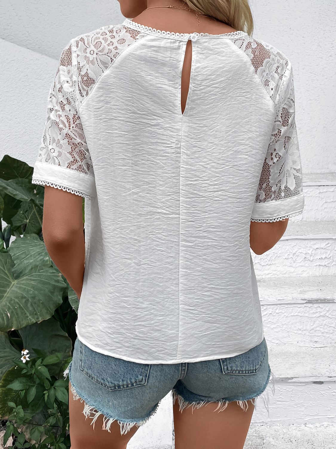 Lace Round Neck Short Sleeve Top