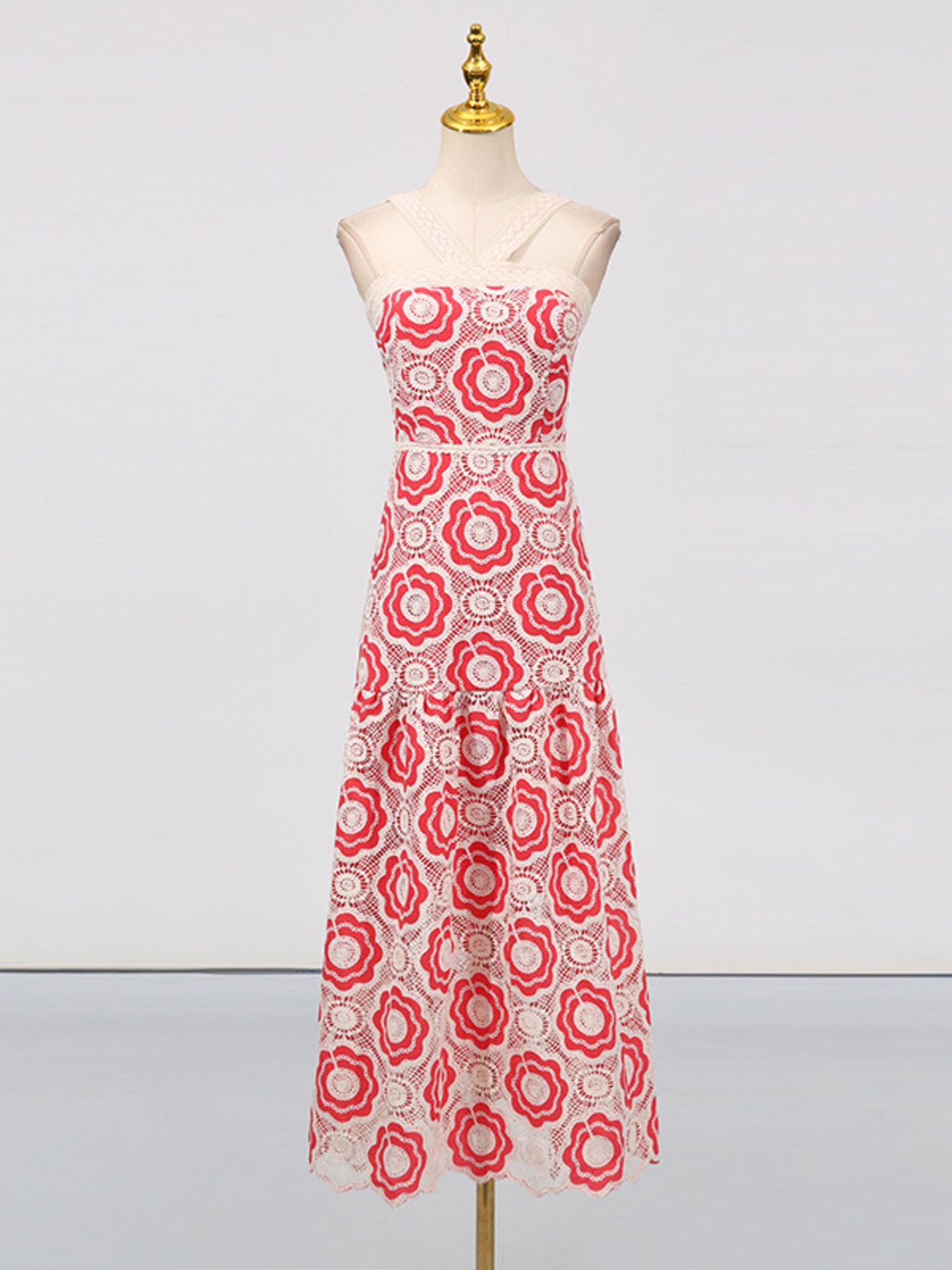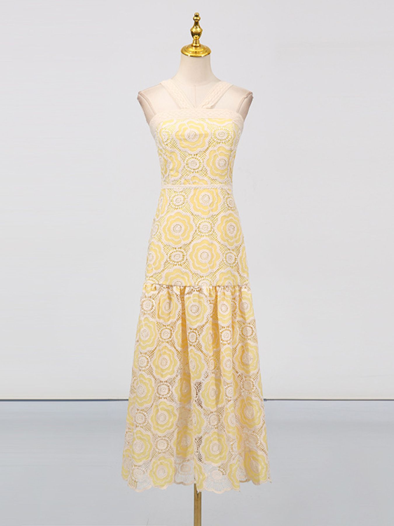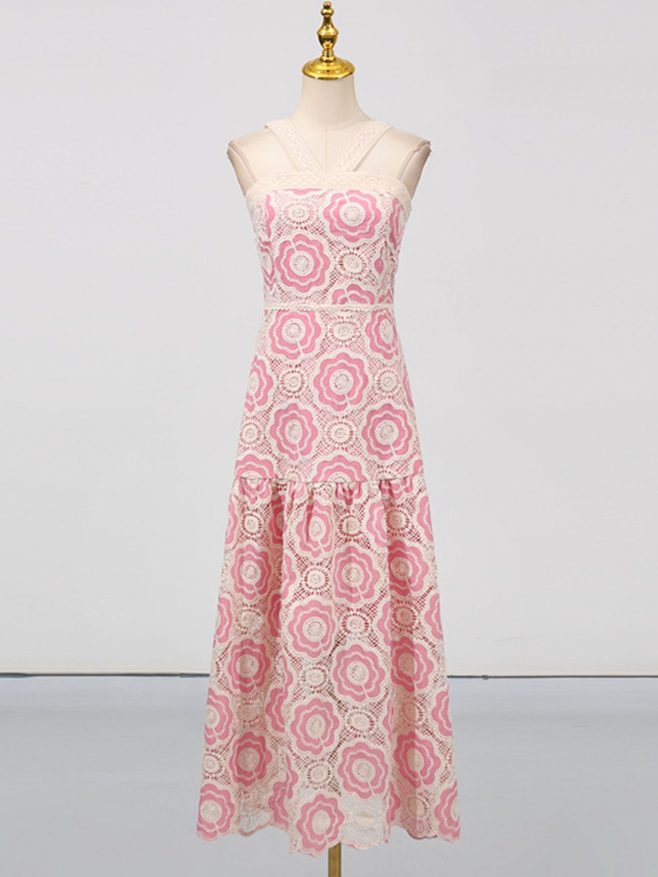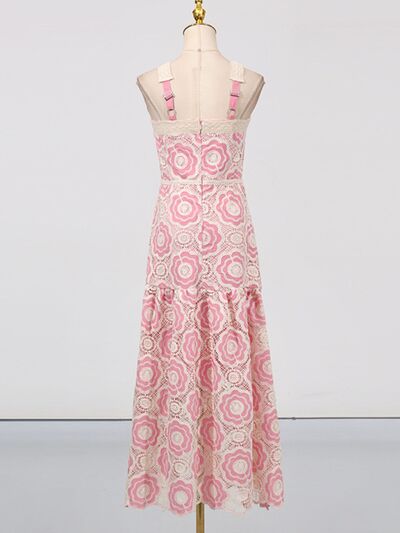 Lace Sleeveless Tiered Midi Dress