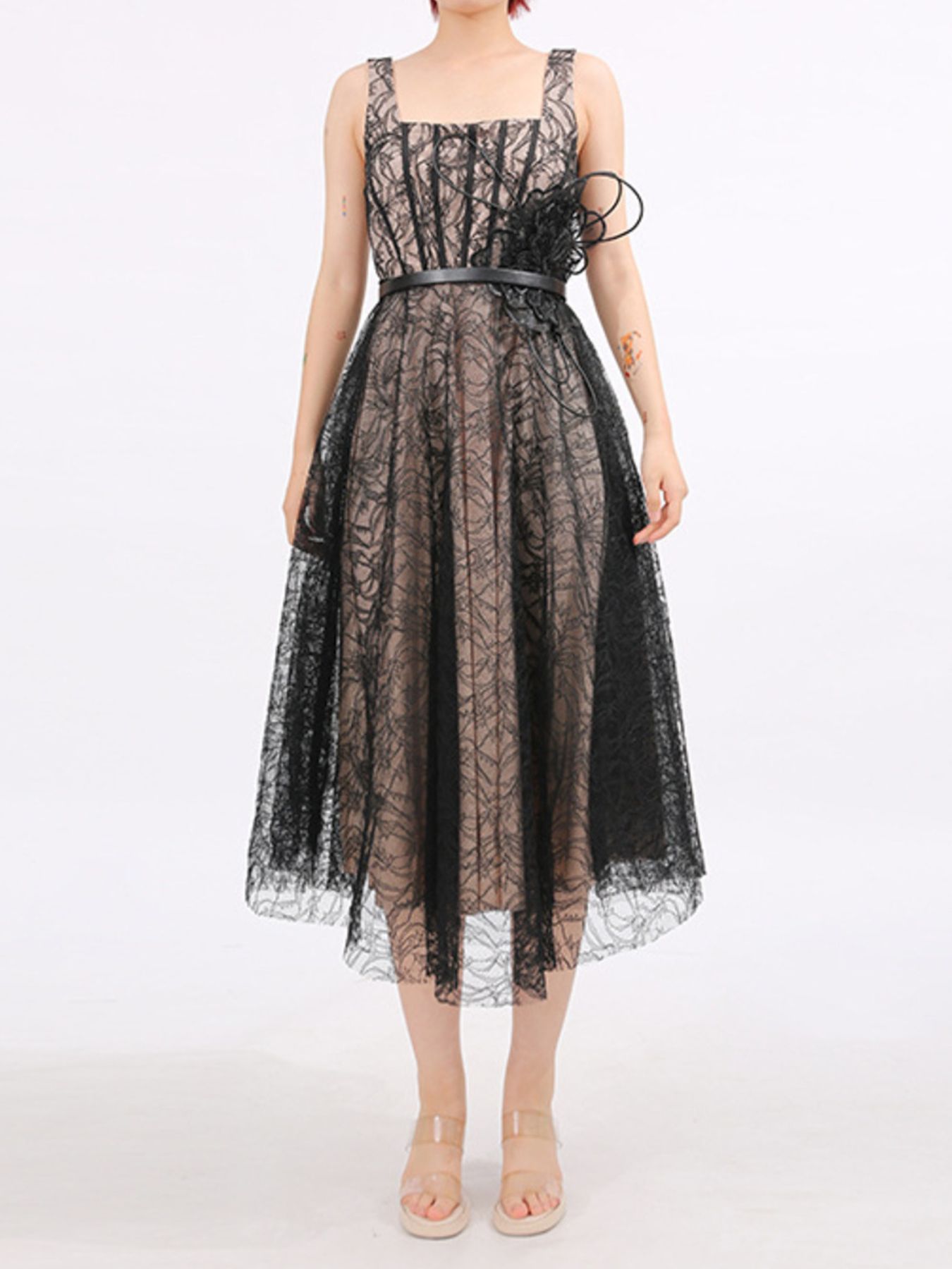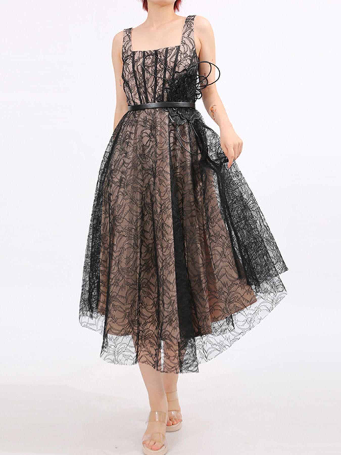 Lace Square Neck Midi Dress