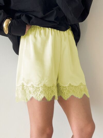 Lace Trim Elastic Waist Shorts