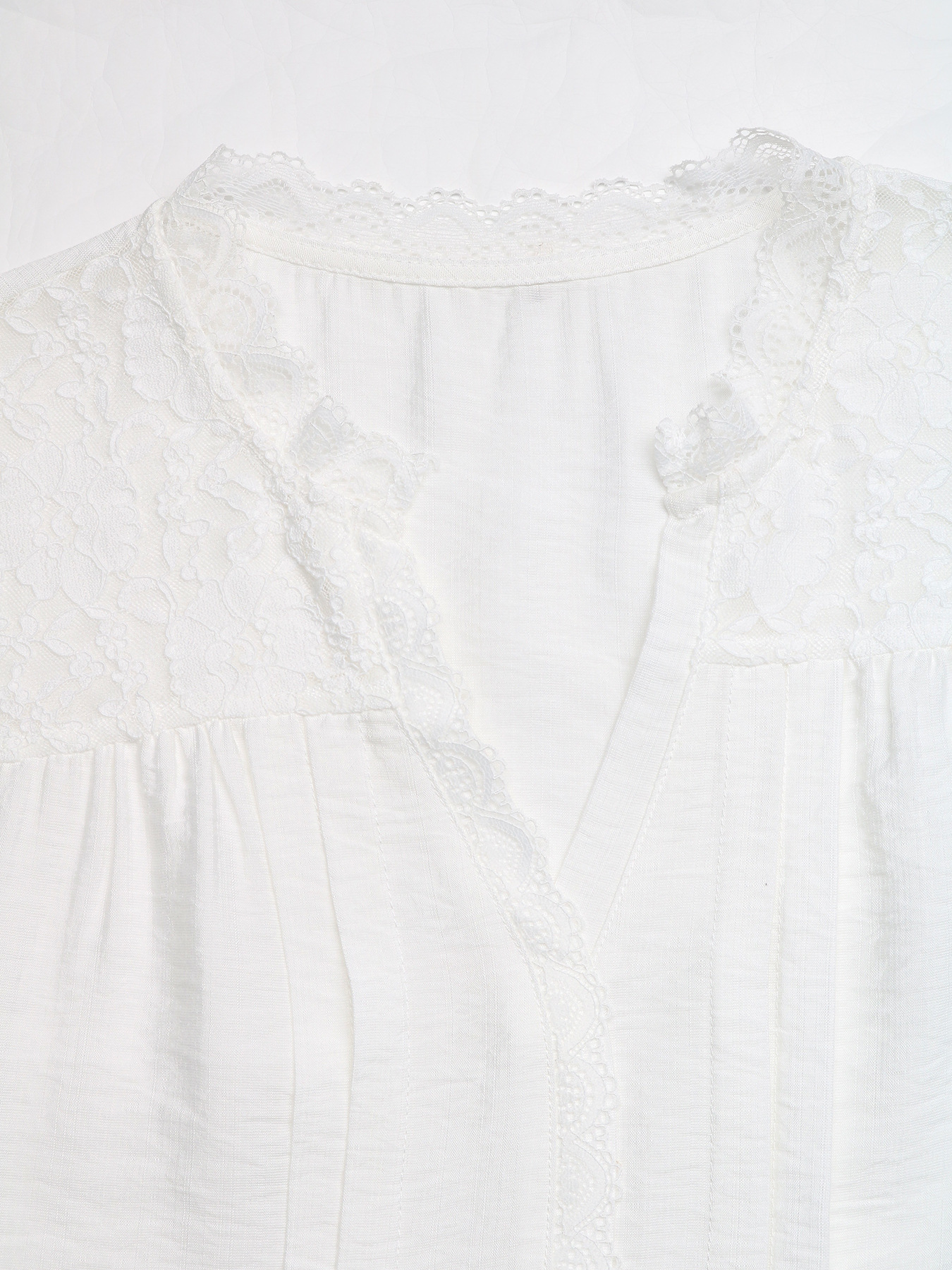 Lace Trim Notched Blouse