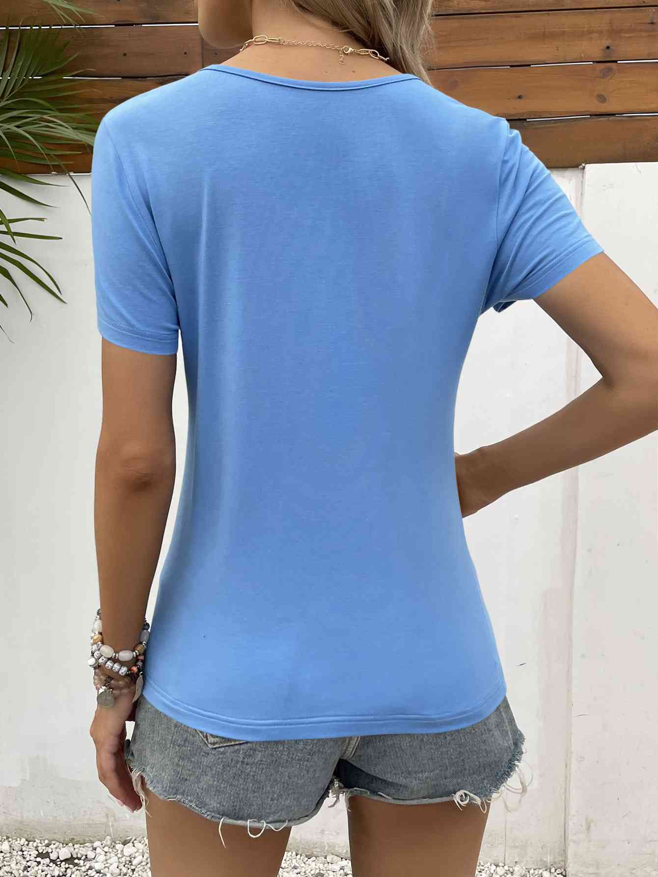 Lace Trim V-Neck Short Sleeve Blouse