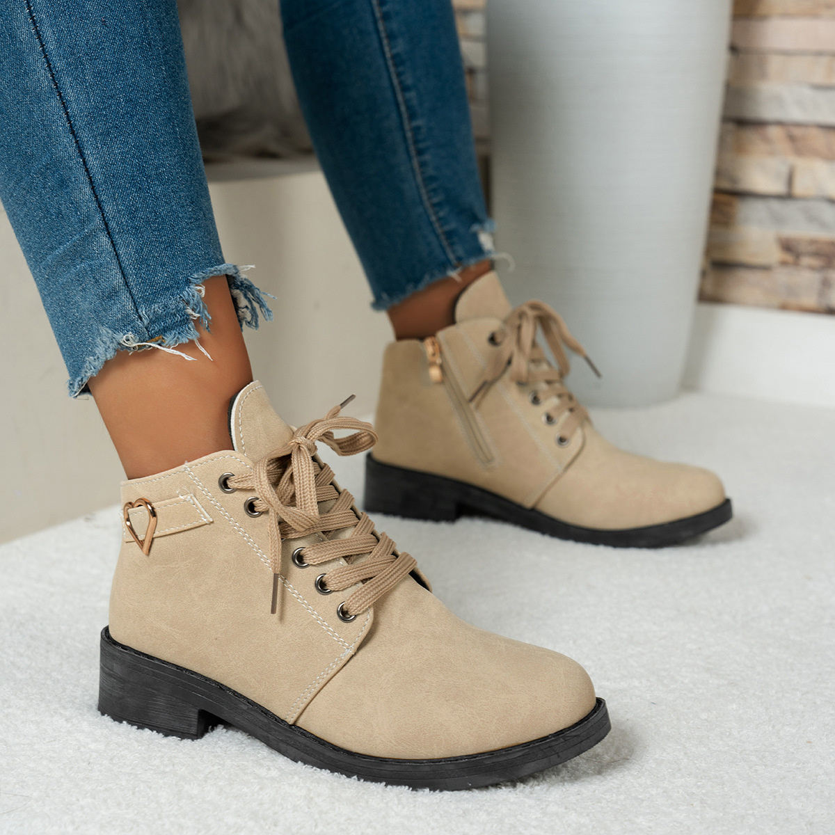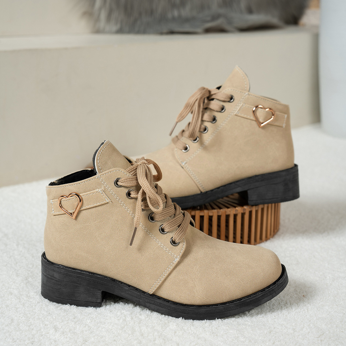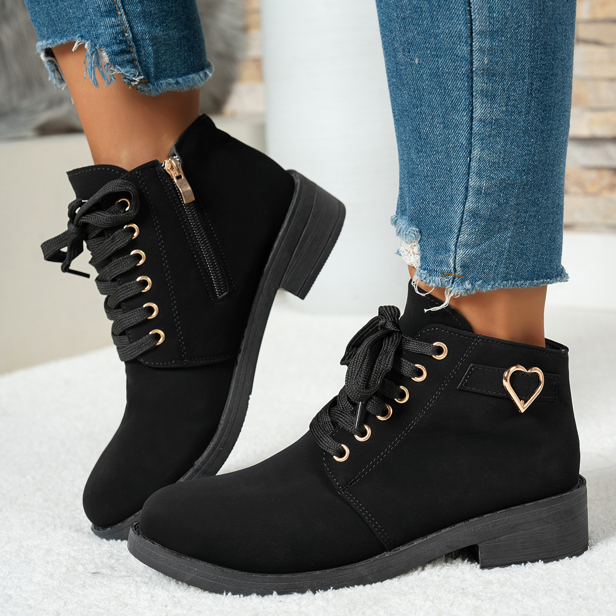 Lace-Up Ankle Boots with Heart Charm Detail
