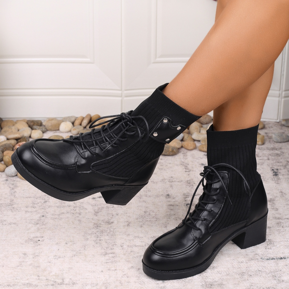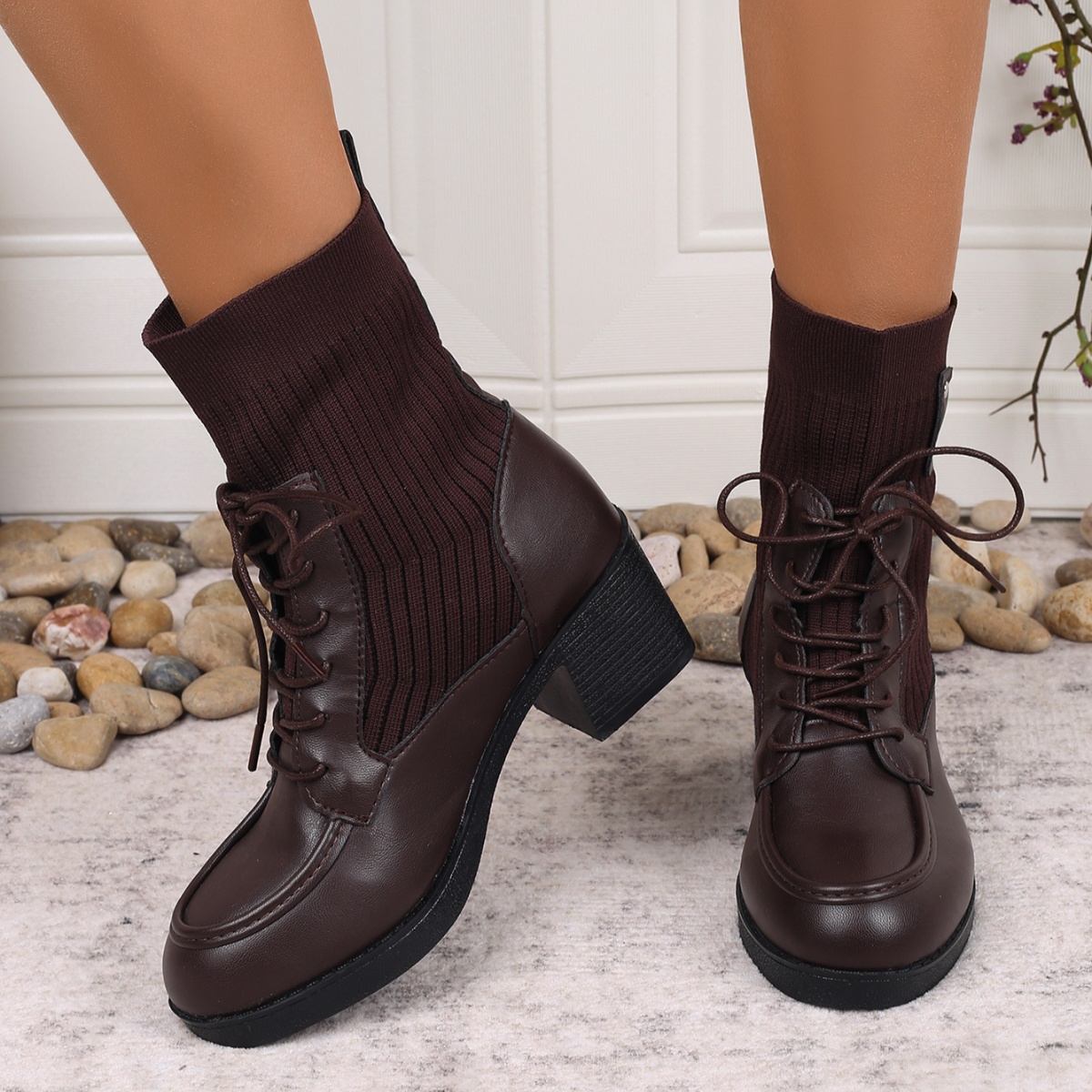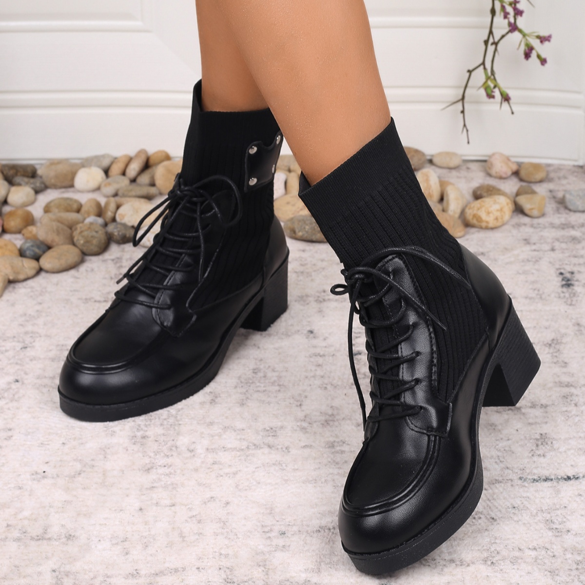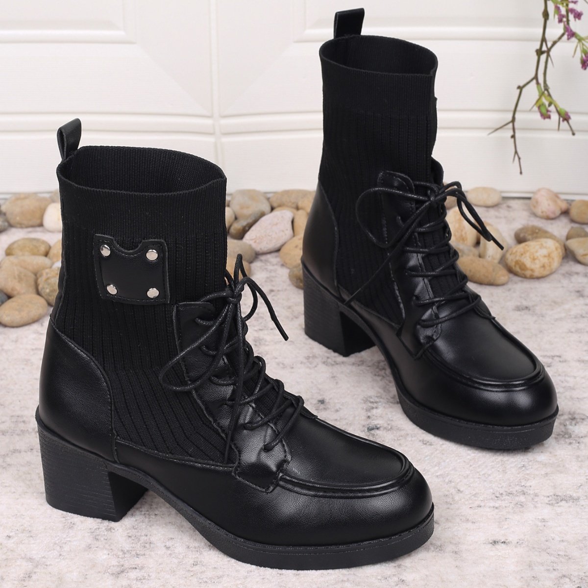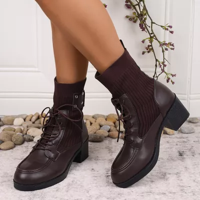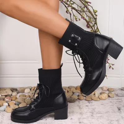 Lace Up Block Heels Boots