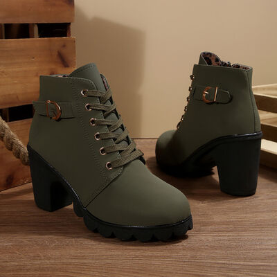 Lace-Up Buckle Chunky Heel Ankle Boots