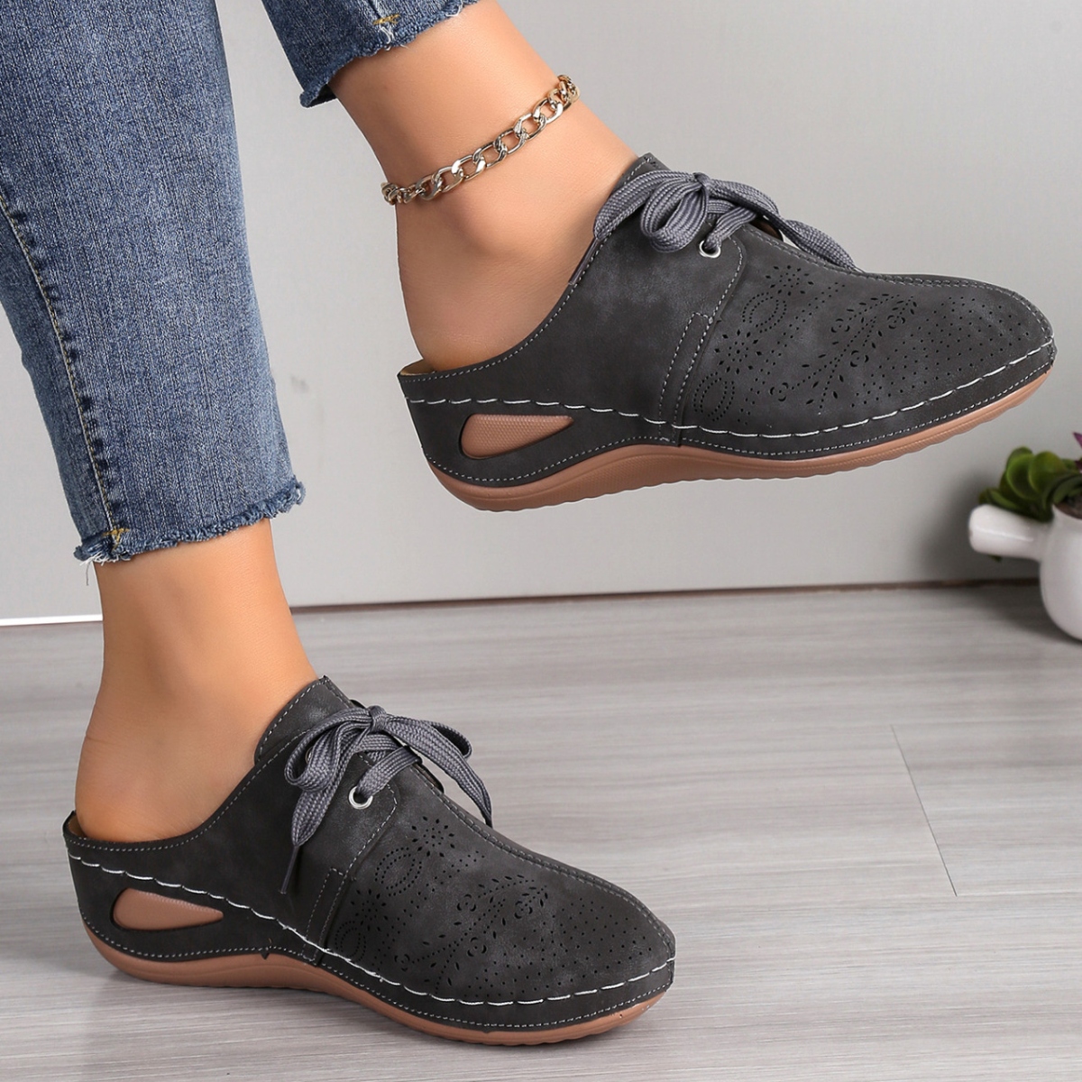 Lace-Up Round Toe Wedge Sandals