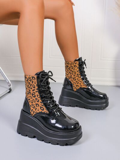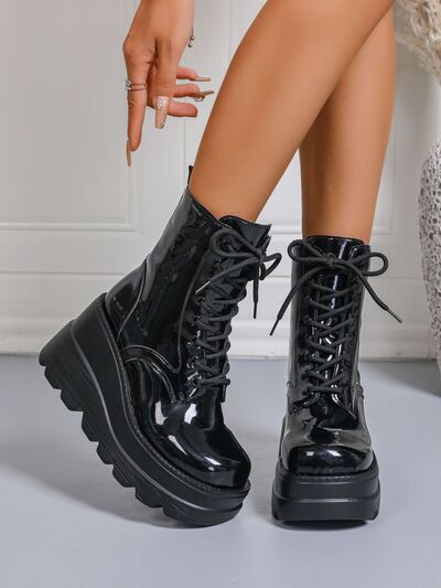 Lace Up Wedge Platform Boots