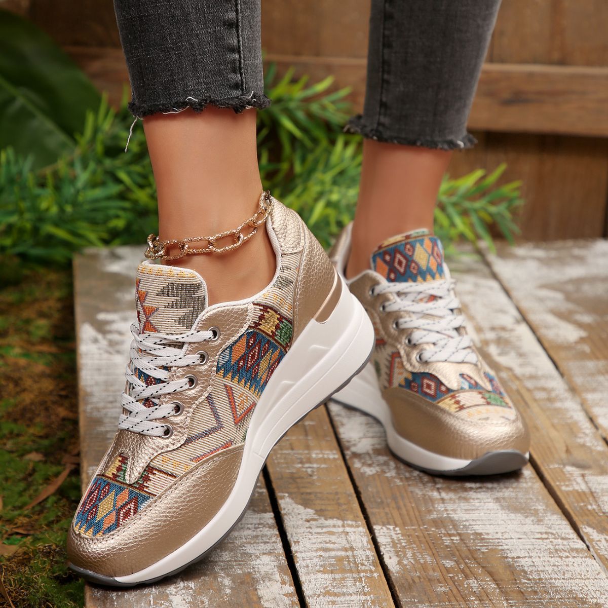 Lace Up Wedge Sneakers