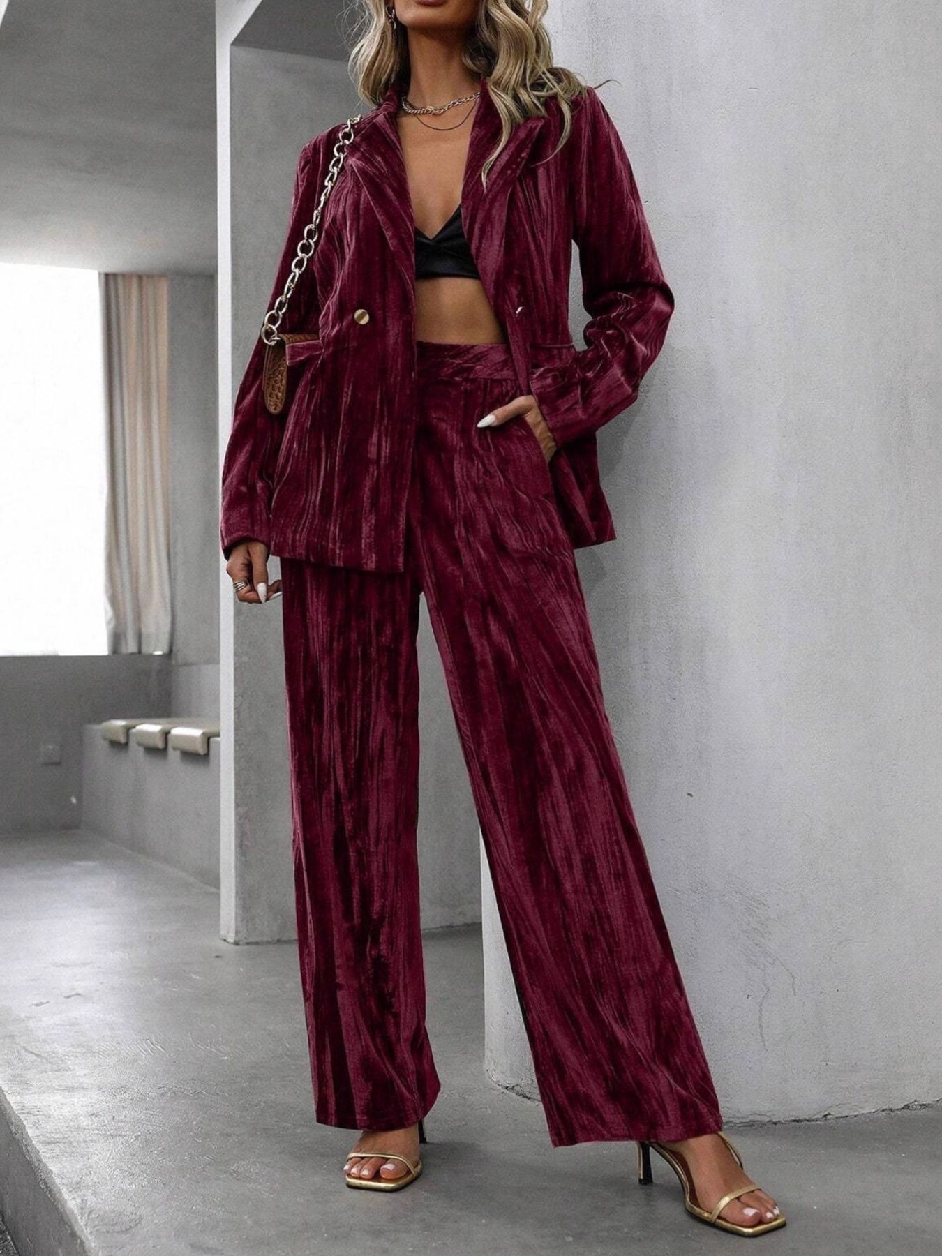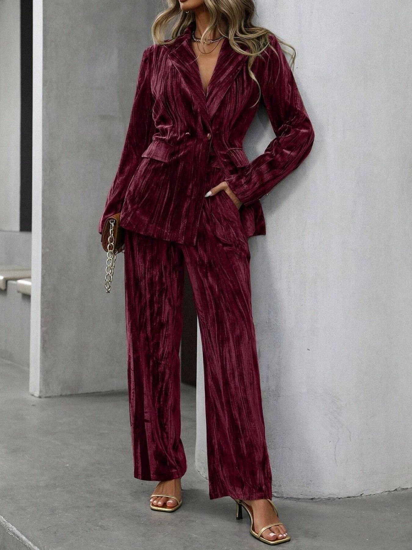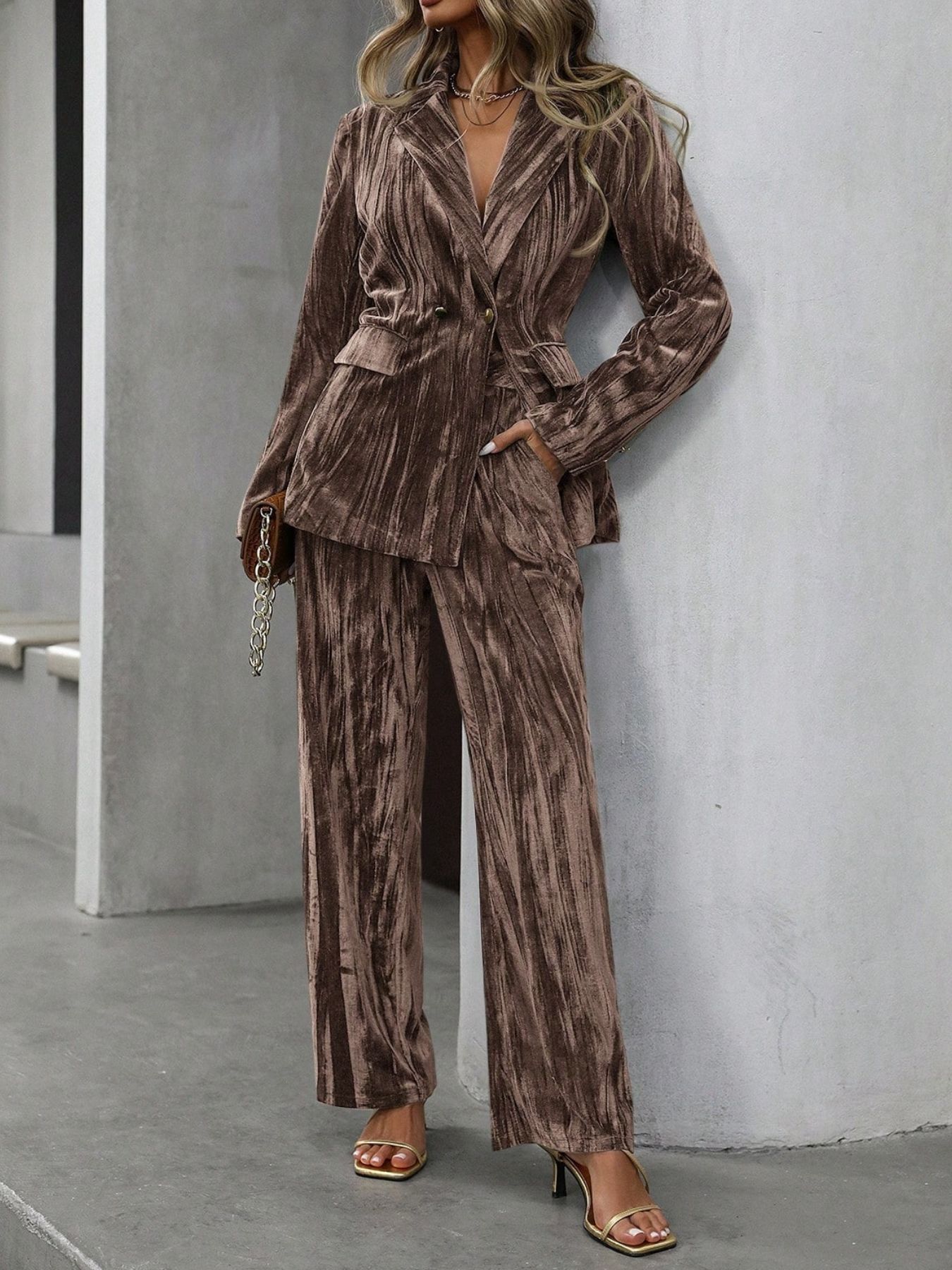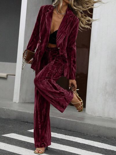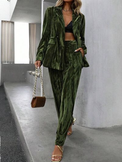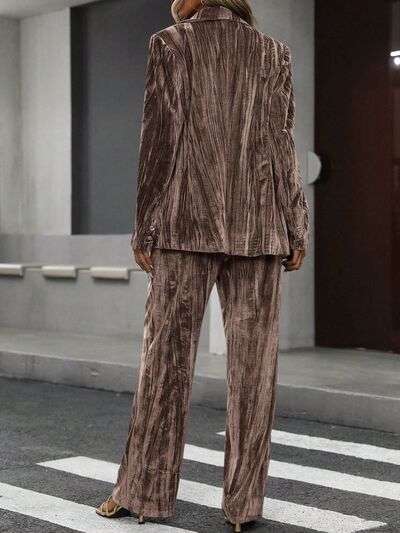 Lapel Collar Long Sleeve Blazer and Pants Set