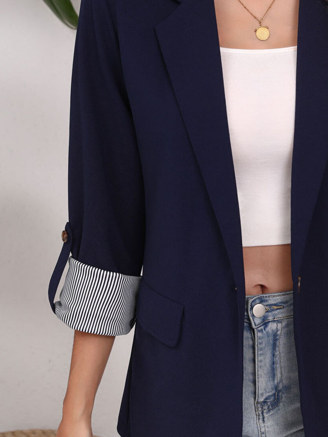 Lapel Collar Roll-Up Sleeve Blazer