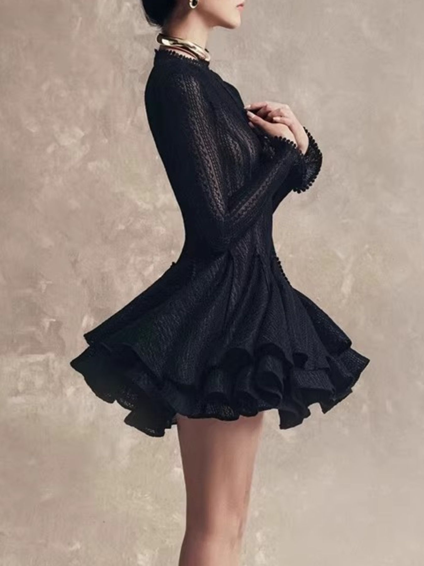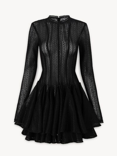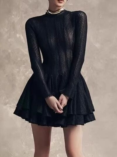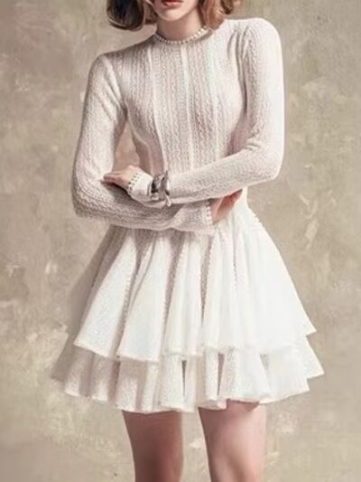 Layered Round Neck Long Sleeve Dress