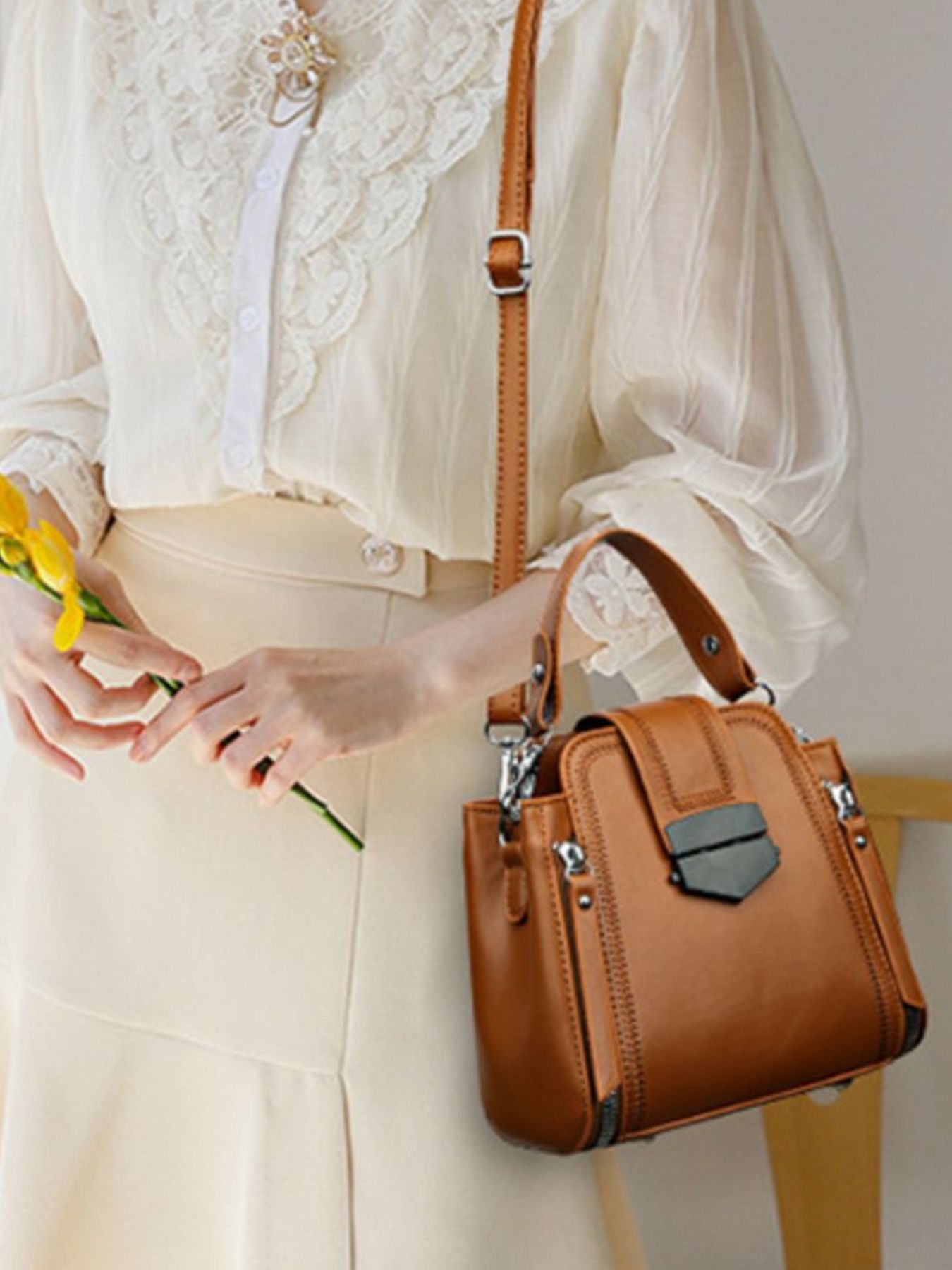 Leather Bucket Crossbody Bag