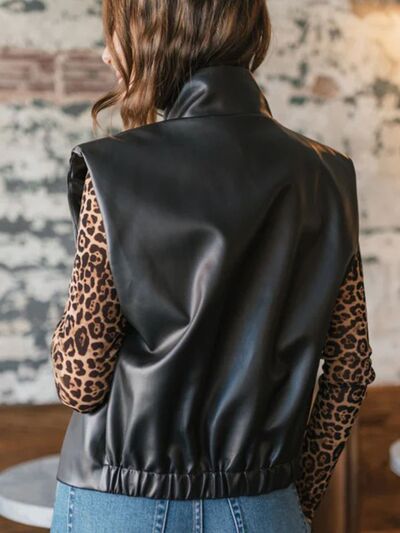 Leather Sleeveless Vest Coat with Zipper Closure
