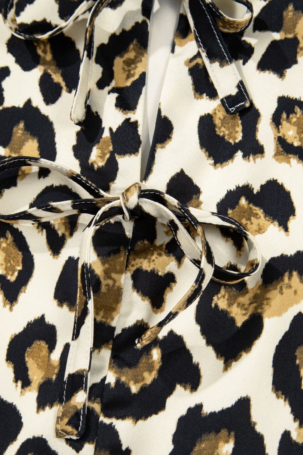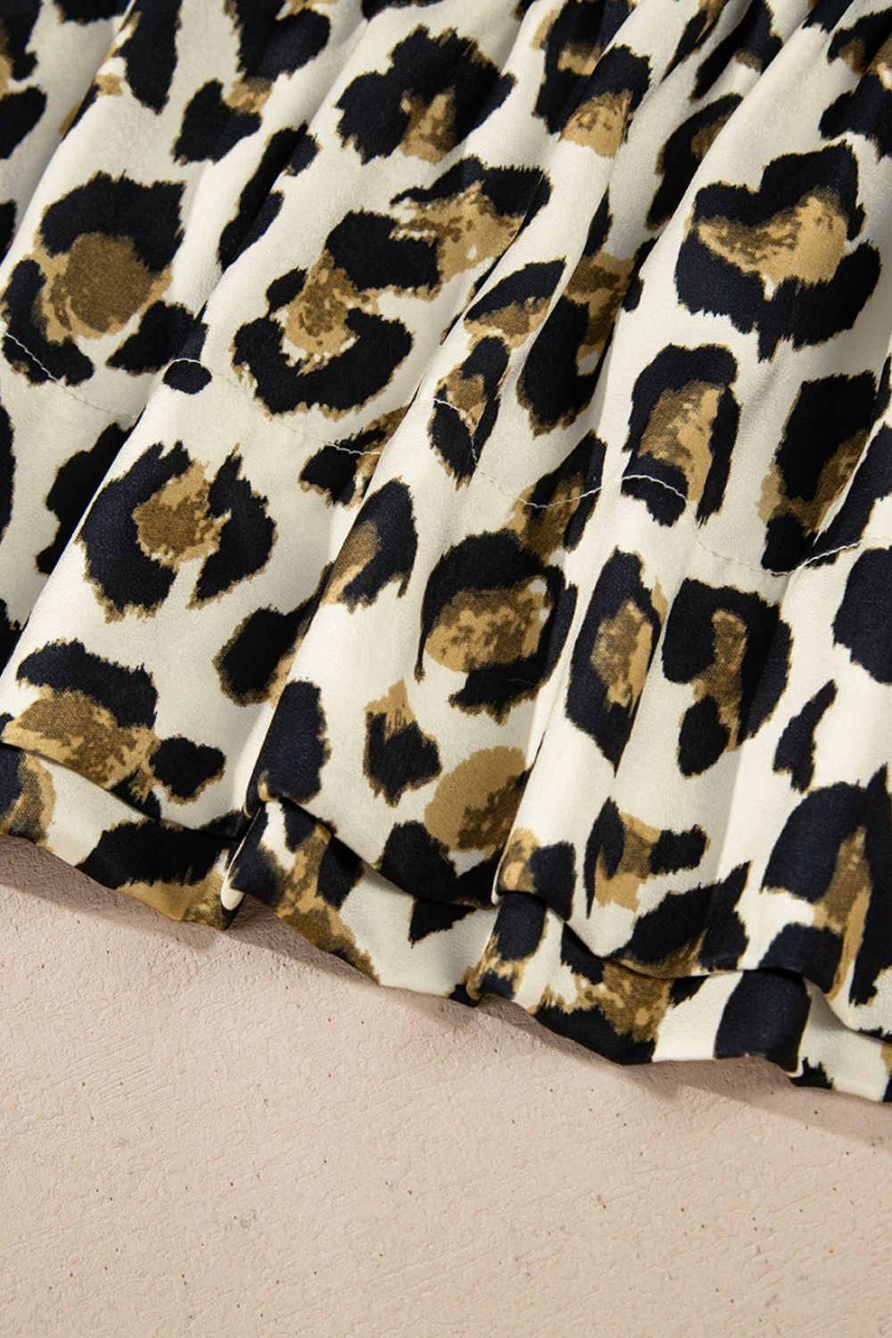 Leopard Bow Tie Front Puff Sleeve Peplum Blouse