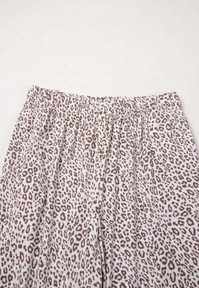 Leopard Button Down Long Sleeve Top and Pants Lounge Set