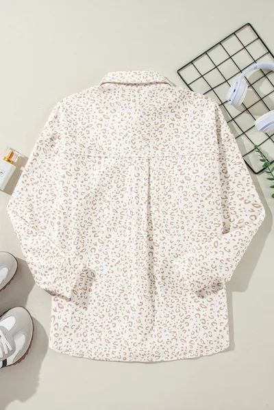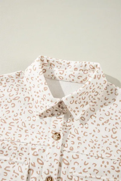 Leopard Collared Neck Dropped Shoulder Jacket