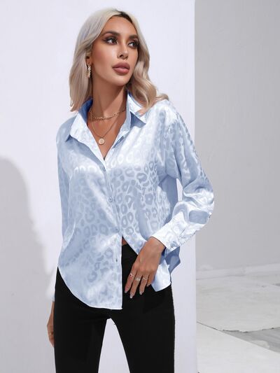 Leopard Collared Neck Long Sleeve Shirt