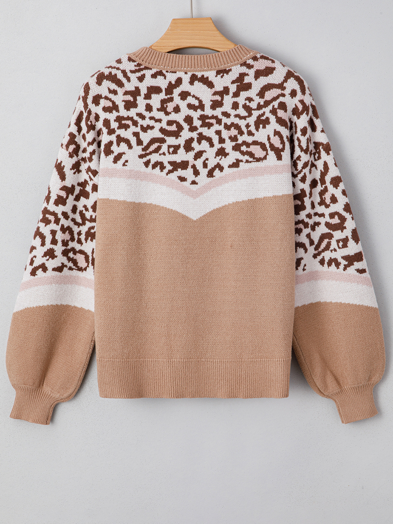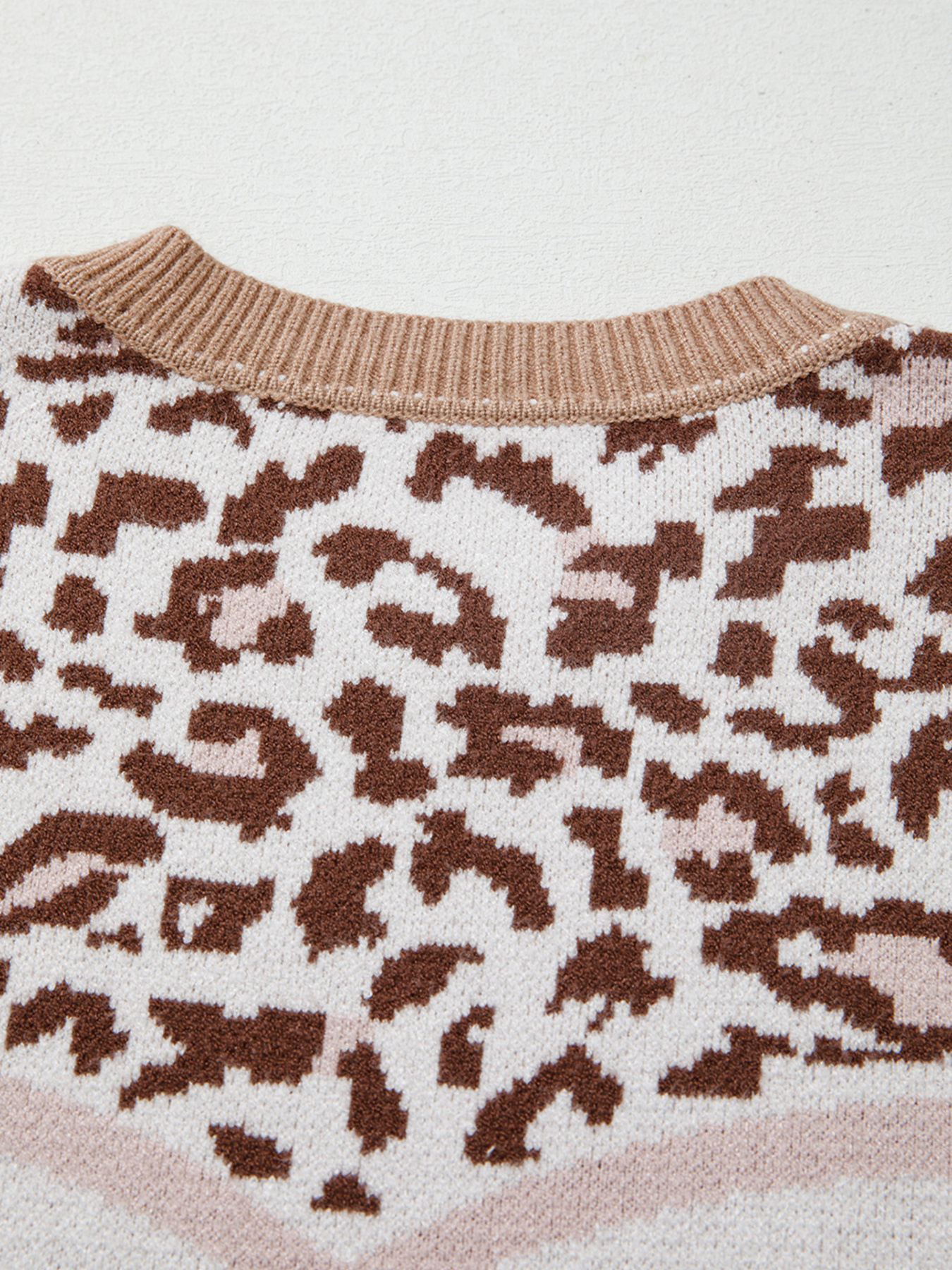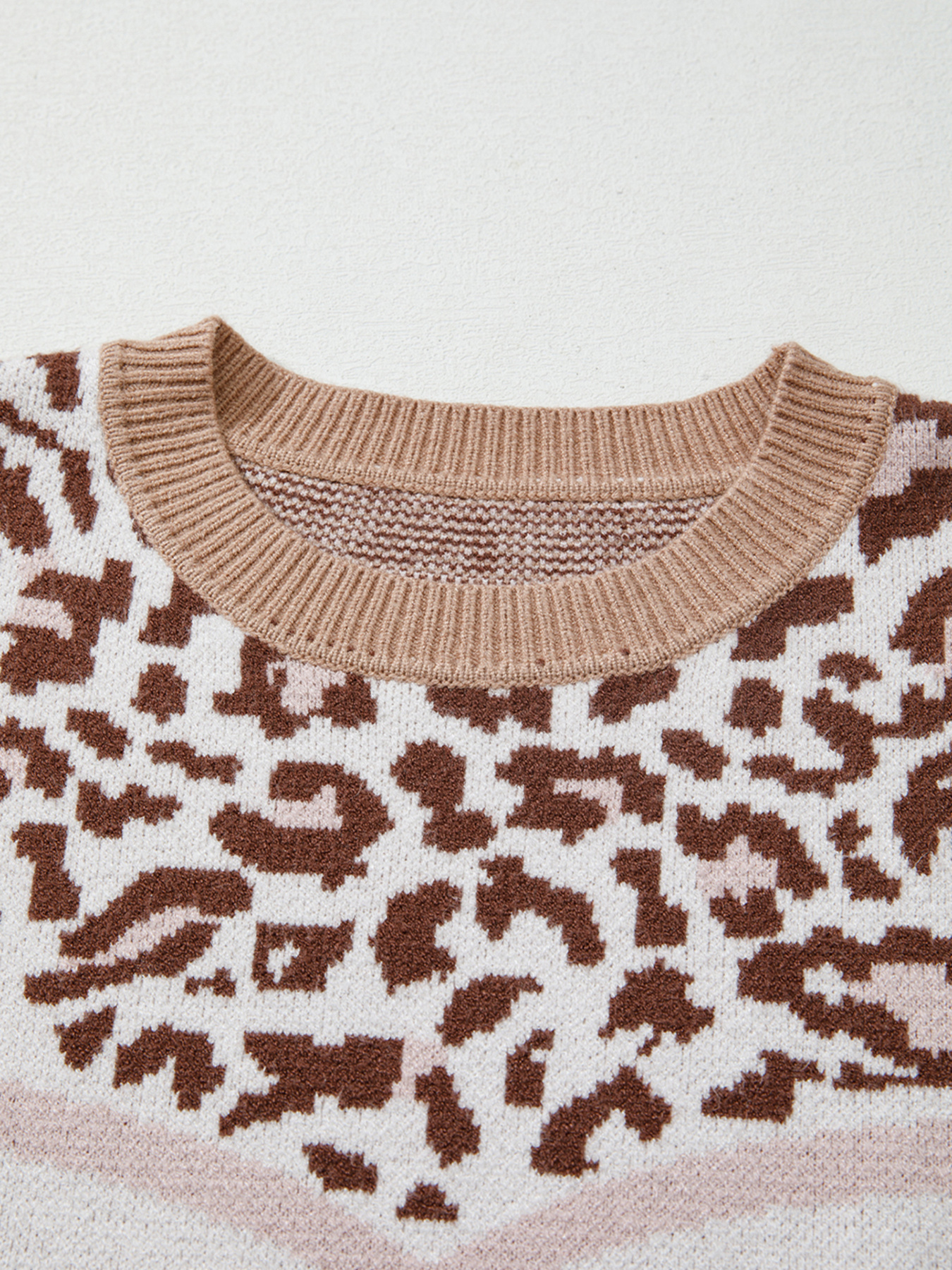 Leopard Color Block Knit Round Neck Baggy Sweater