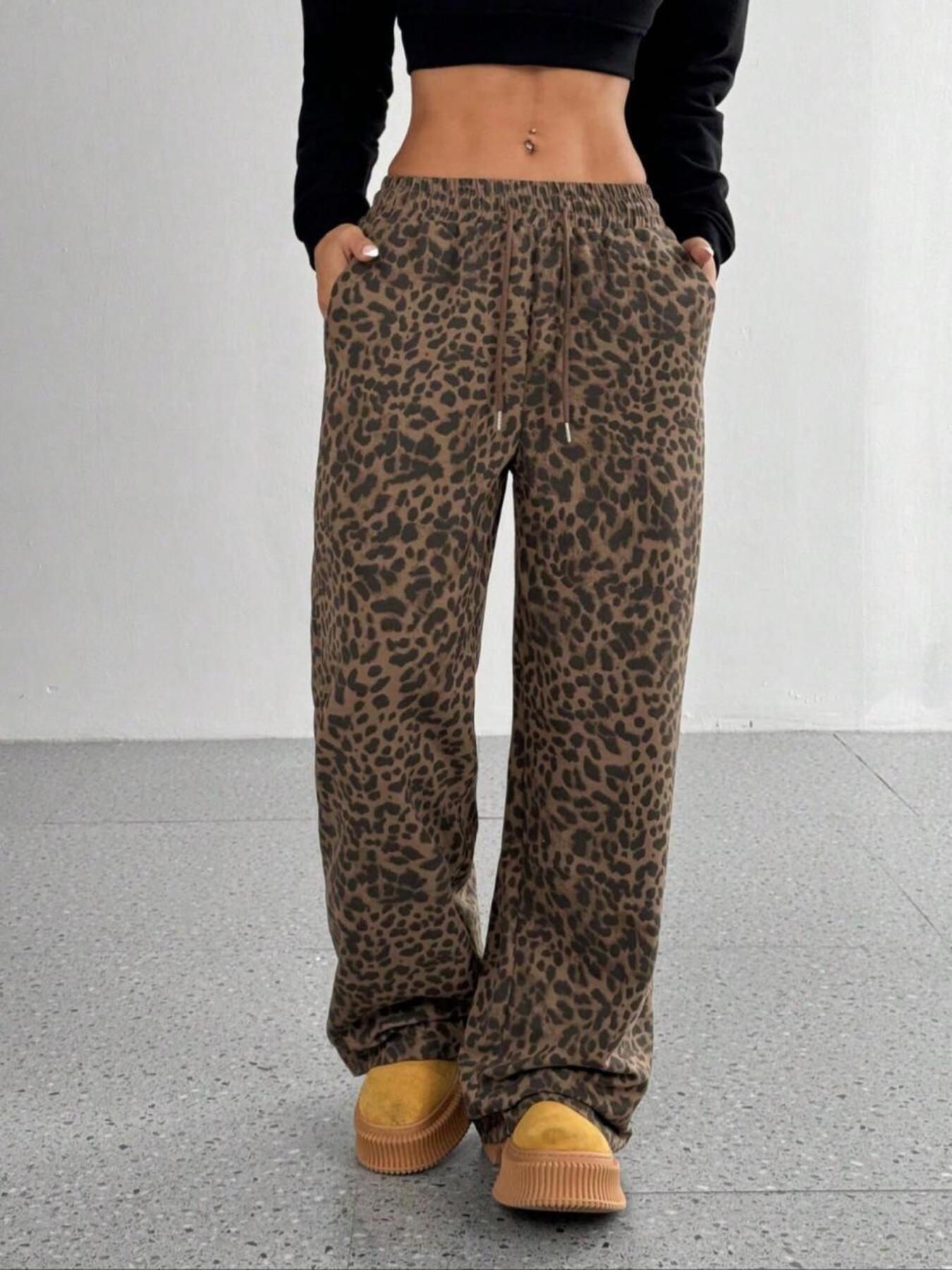 Leopard Drawstring Wide Leg Pants
