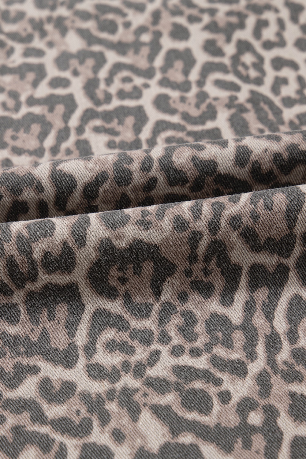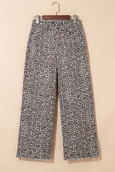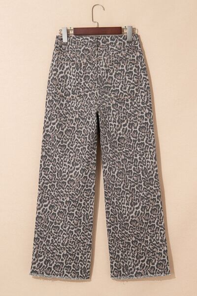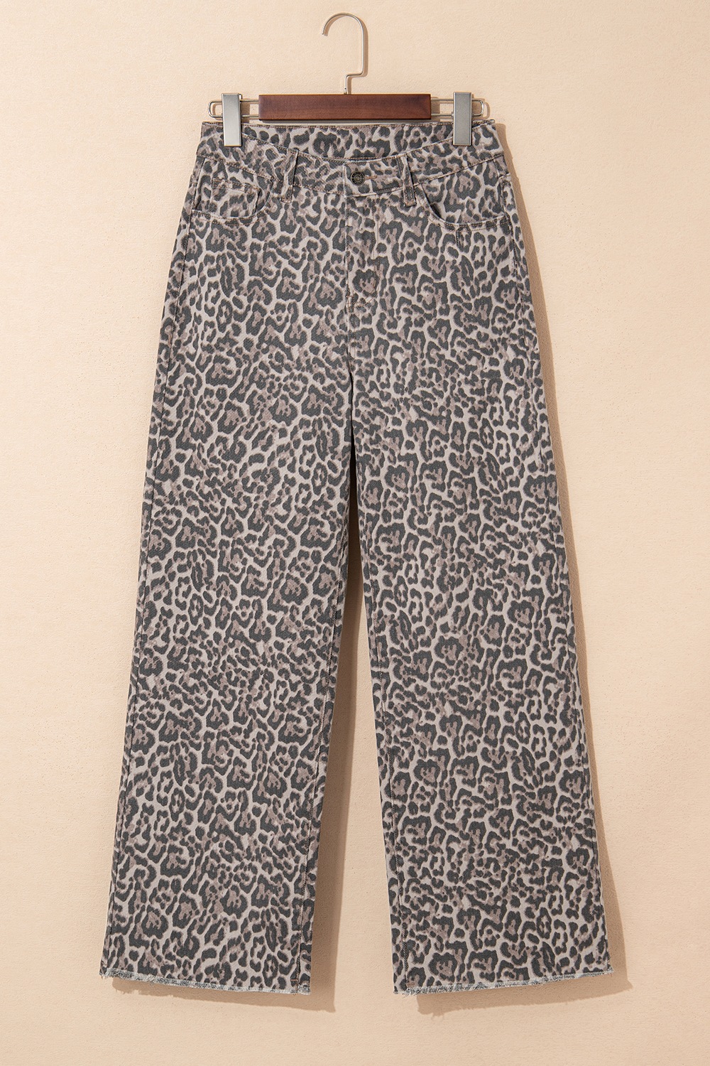 Leopard Frayed Edge Wide Leg High Waist Jeans