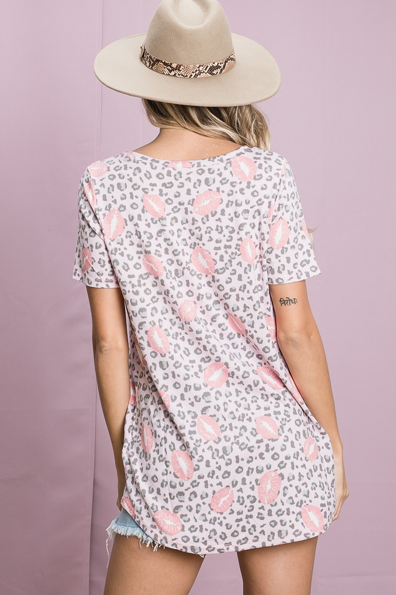 Leopard Lips Print Top V Neck Top