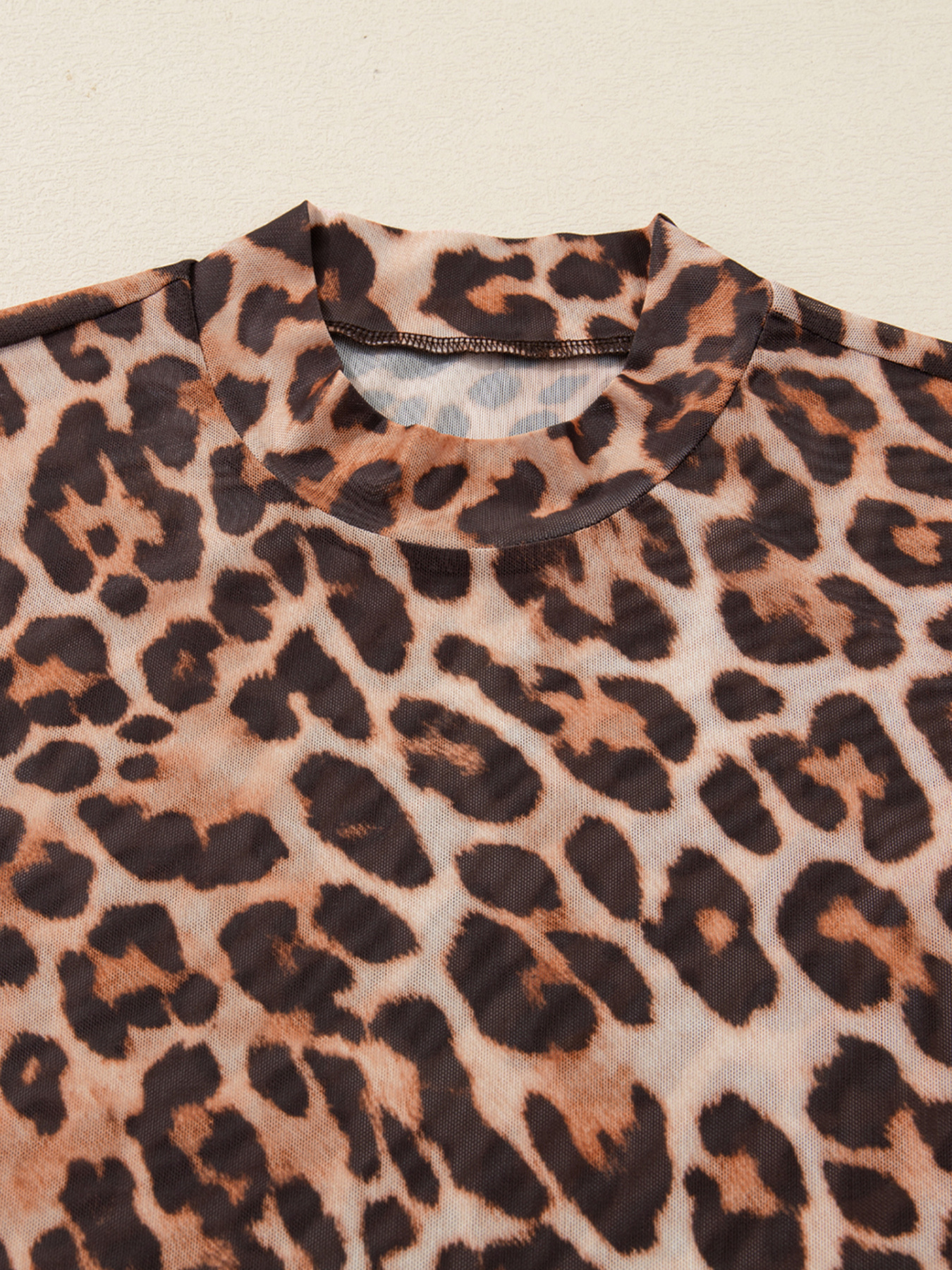 Leopard Mock Neck Long Sleeve Mesh Top