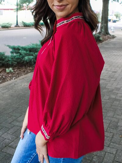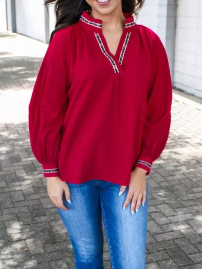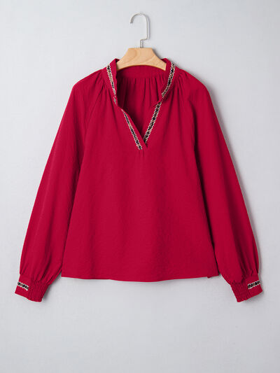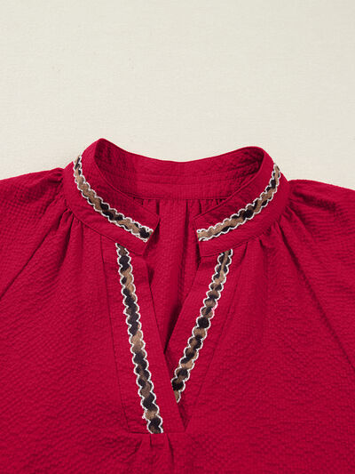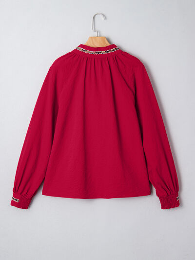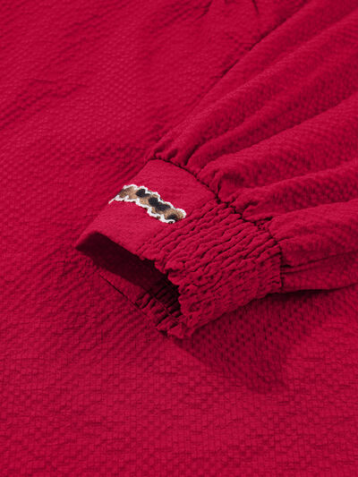 Leopard Notched Long Sleeve Blouse